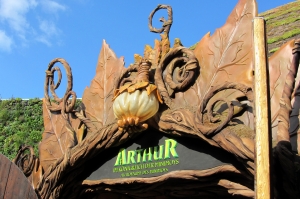 Zum ersten Mal in der Geschichte des Europa-Park überhaupt, holte man sich eine Filmlizenz in den Park und kreierte eine Attraktion rund um Arthur und die Welt der Minimoys. Bereits drei Teile sind von Arthur in den deutschen und vor allem französischen Kinos gelaufen. In Frankreich war der Film weitaus erfolgreicher als in Deutschland. Vor allem dieser Umstand scheint der Familie Mack wichtig zu sein, um den Anteil der französischen Besucher langfristig zu erhöhen. Wer die Geschichte rund um Arthur nicht kennt, hier die Kurzfassung: Arthur lebt bei seinen Großeltern, weil seine Eltern viel beschäftigt sind. Diese erzählen ihm Geschichten rund um einige sagenhafte Kolonien in Afrika, zu denen auch die Minimoys gehören. Als Arthur eines Abends allein ist, gräbt er im Keller des Großvaters Pläne aus, die ihn zu den Minimoys führen, wo alles überdimensional groß ist bzw. man selbst ziemlich klein...Die Geschichte rund um Arthur wird dabei in einem ganzen Indoor-Themenbereich erzählt, wo sich jeder Besucher selbst einen Eindruck der Minimoys-Welt machen kann. Riesige Tulpen, große Sagenwesen und viele Details gibt es hier in einem großen Rondell zu sehen. Sogar Arthur fliegt mit seinen Besuchern immer mal wieder vorbei. Überhaupt sind die Schienen von Arthur überall in diesem Themenbereich zu sehen. Schon in der (Außen-)Queue durchquert der Wagen immer wieder die Wege und macht Vorfreude auf die Fahrt. Doch worum geht es bei der Fahrt? Die Geschichte ist hier recht kurz erzählt: Auch in der kleinen Fabelwelt ist nicht immer eitel Sonnenschein und so versuchen die Schergen rund um den Boss Maltazard, das Königreich zu stürzen und wir machen uns mit Arthur auf um genau das zu verhindern.