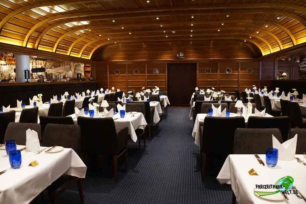 Frühstück und Abendessen finden in den beiden großen Restaurants "Harborside" und "Captain's Finest" statt und sind wie schon von den restlichen Europa-Park Hotels gewohnt, sehr umfangreich und werden für die Kinder mit einem Besuch von Ed und Edda Euromaus gekrönt. Apropos Frühstück: