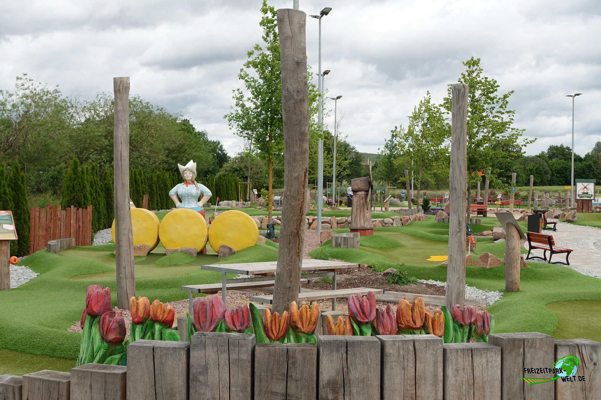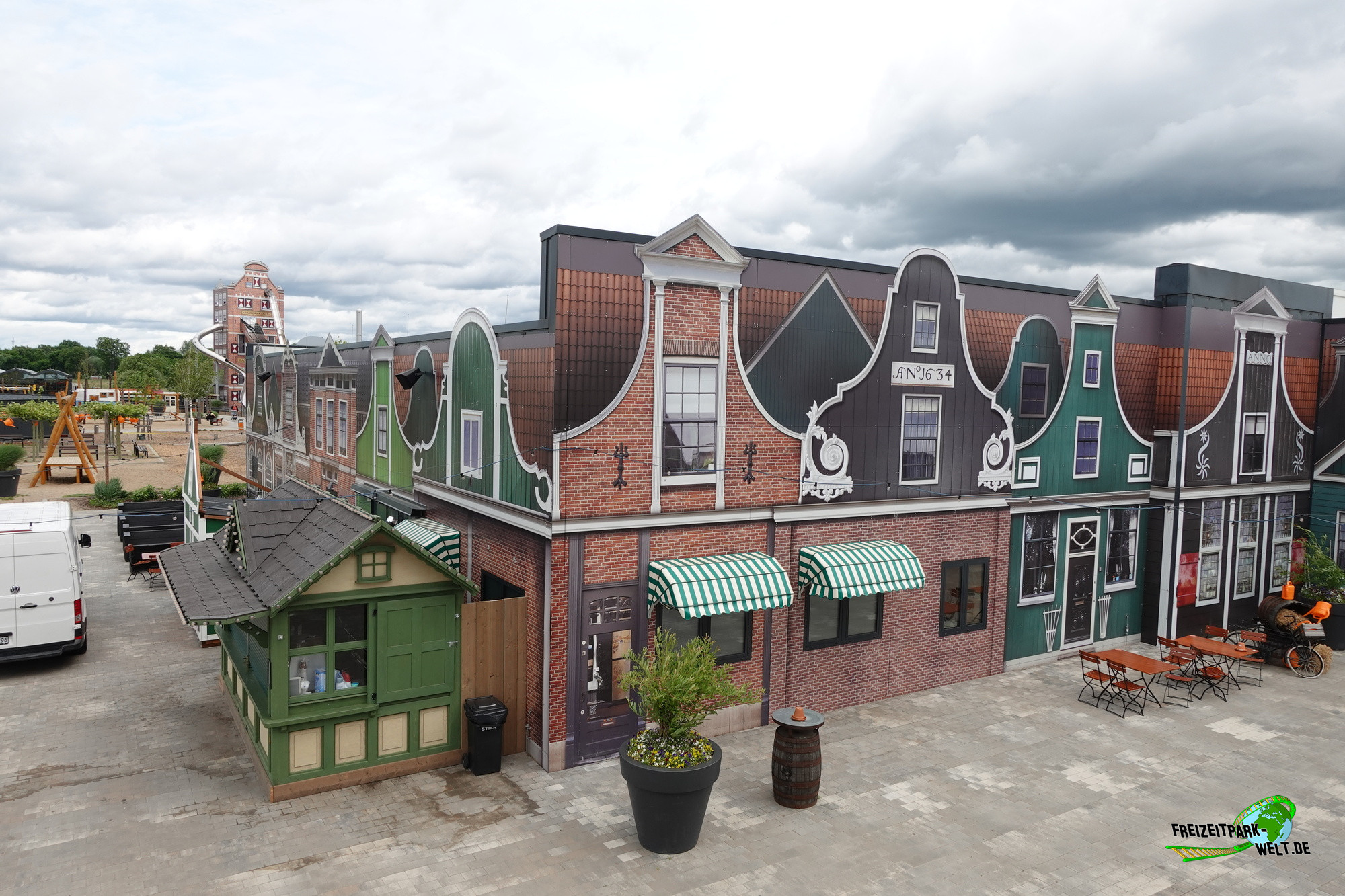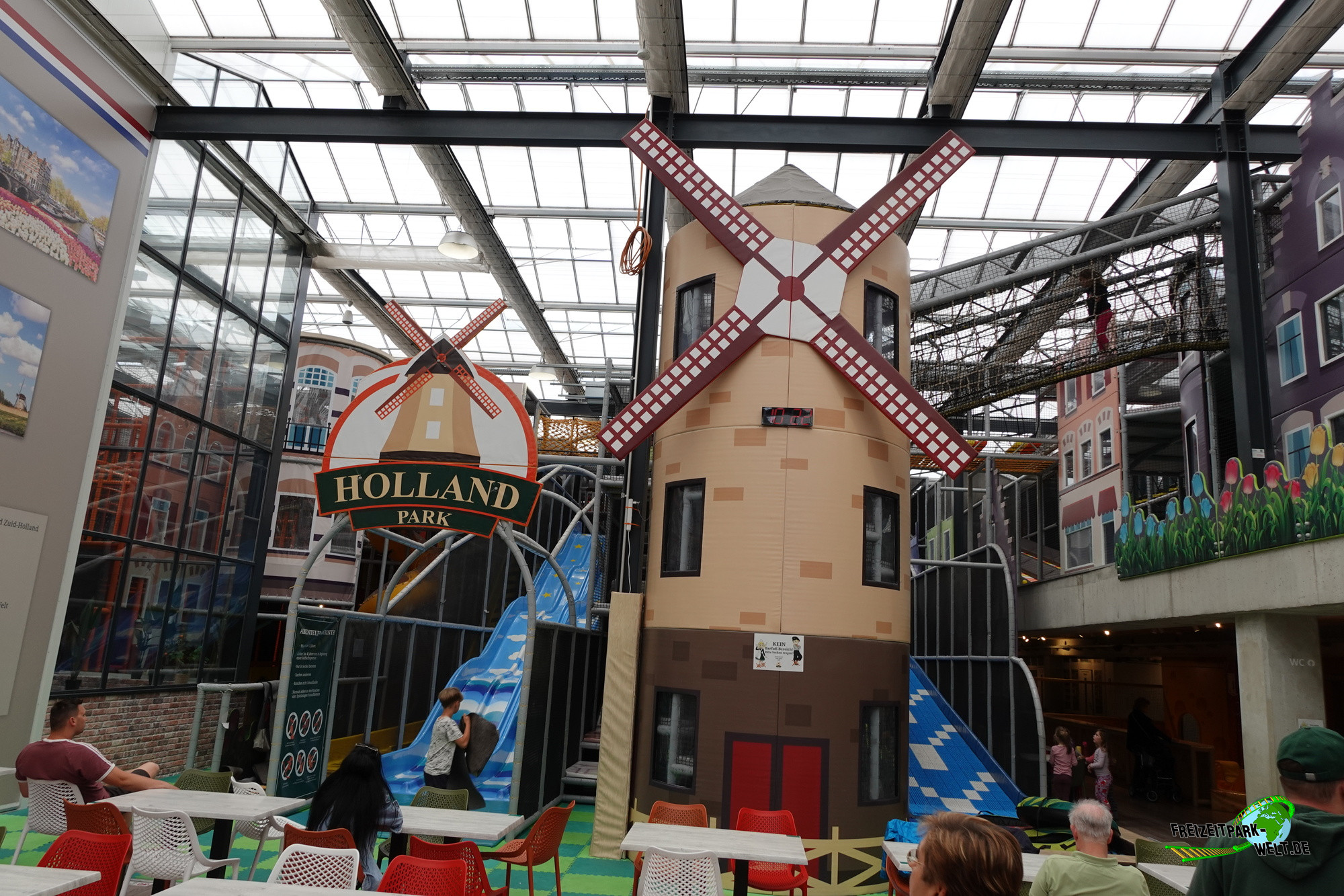 Schon die Fassade des Freizeitparks bei Berlin lässt die Besucher von einem Abstecher nach Holland träumen: die abgebildeten bunt aneinander gereihten mehrstöckigen Häuser erinnern stark an Amsterdam. Der Eindruck, dem deutschen Nachbarland einen Besuch abzustatten, verfliegt auch beim Betreten der opulenten Eingangshalle nicht. Überall sind typisch niederländische Dekorationen zu sehen, in der Markthalle gibt es holländische Produkte.