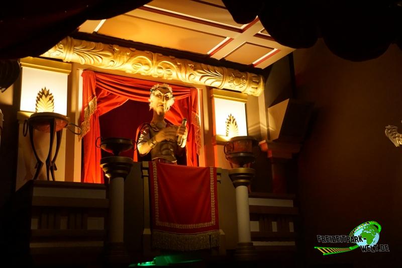 Für eine Achterbahn nichts ungewöhnliches. Für ein Mad House aber doch um ein Vielfaches teurer als die eigentliche Hardware. Somit war klar, dass man von einem echten Highlight mit üppiger Thematisierung ausgehen konnte. Eines vorweg: Das Ergebnis ist eine faszinierende Attraktion mit großartiger Story!Cäsar sucht dich!