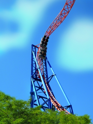 Gut so, denn so konnte der Winter noch zur Optimierung und Feinjustierung genutzt werden und startete zum Saisonstart 2005 durch. Die Achterbahnfahrt mit dem Sky Wheel vereint dabei eine hohe Geschwindigkeit, größtmögliche Freiheit auf den Sitzen und zwei Überschläge wovon einer bereits direkt nachdem Vertikallift und mit sehr langsamer Geschwindigkeit erfolgt. Obwohl es sich beim Sky Wheel um eine Achterbahn mit Überschlag handelt, kommen hier keine Schulterbügel zum Einsatz, sondern neuartige Schossbügel, die das Herz des X-Cars ausmachen. Der Bügel ist sehr wuchtig aber garantiert eine ungewöhnliche Freiheit, denn bisher waren fast alle Looping-Achterbahnen mit Schulterbügel ausgestattet.Soweit, so gut. Doch kann das recht kurze Spektakel auch vom Layout überzeugen?