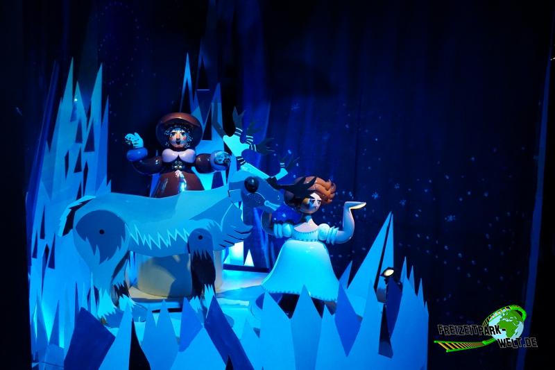 Die Fahrstrecke bietet ständige Wechsel der Ebene, so dass man den Verlauf nie wirklich vorhersagen kann, was die Fahrt ebenfalls spannend macht. Toll ist auch die Möglichkeit zwischen dänischen und englischen Text mittels Knopfdruck zu wählen.Insgesamt eine Themenfahrt, die sehr liebevoll thematisiert worden ist und damit die erstklassigen Familienattraktionen des Tivolis ergänzt.