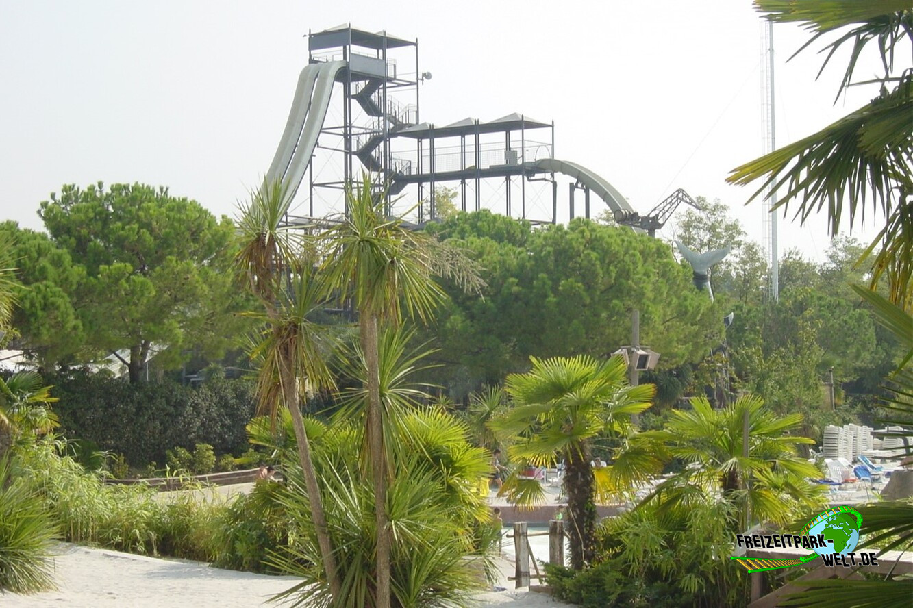 Doch die eigentlichen Stats der Megarutsche sind gleich geblieben. Aus 32m Höhe mit einer Aussicht, die weit über den Gardasee bis auf die andere Uferseite reicht, geht es mit Vollspeed und einer unglaublichen Geschwindigkeit in Richtung Boden. Die Rutsche wechselt dabei relativ sanft von der Senkrechten in die Waagerechte wobei es im Landebecken durchaus leicht schmerzhaft am Rücken werden kann wenn man über das Wasserbecken mit Vollkaracho saust. Außerdem sollte man seine Beine gut verschränken um nicht den nächsten Einlauf zu bekommen. ;)Ansonsten aber eine tolle High Thrill Rutsche par excellence.