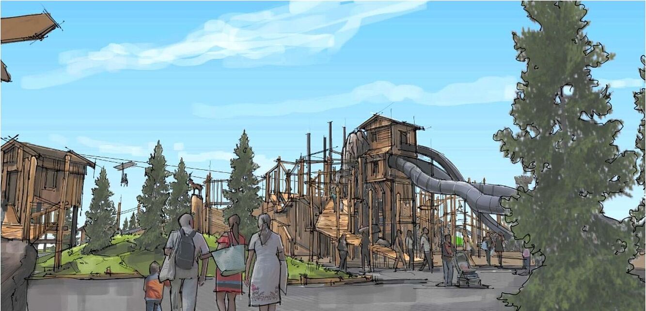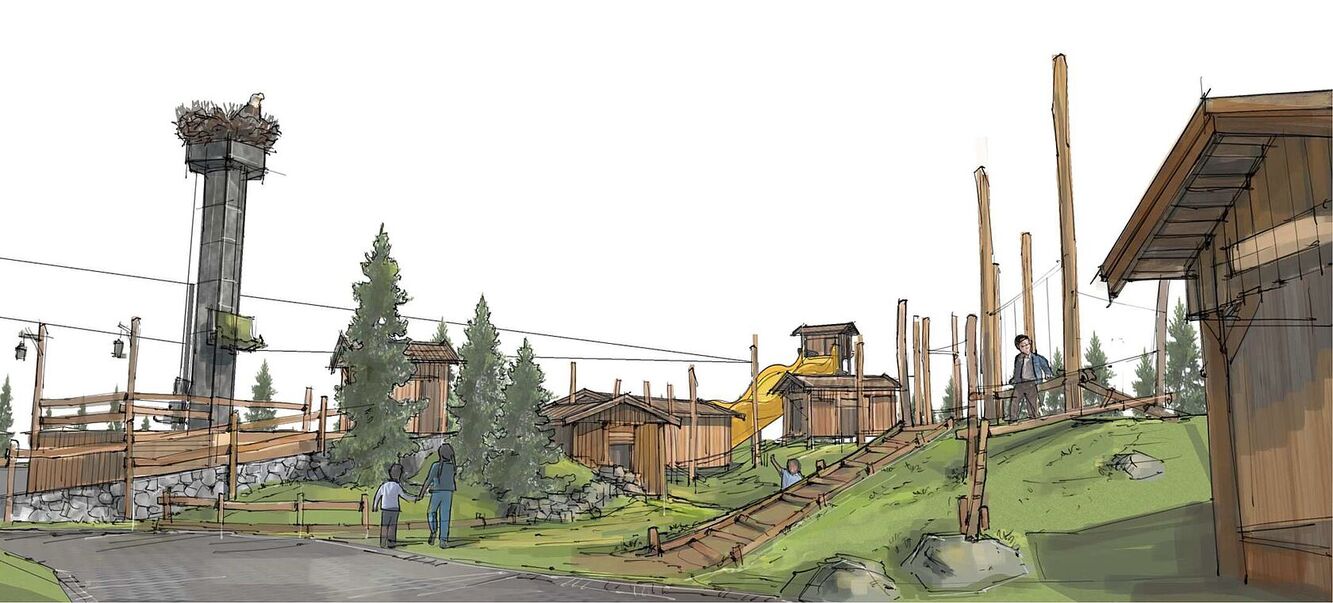 Zentraler Bestandteil der Abenteuer Alm ist der Abenteuer-Spielplatz rund um den 13m hohen Kraxelberg, der rundherum über Gamsi's Gipfelpfad bestiegen werden kann. Ganz oben laden dann verschiedene Röhrenrutschen zu einer wilden Abfahrt ein. Die höchste der Rutschen ist mit einer Höhe von 10m auch was für die größeren Kinder.