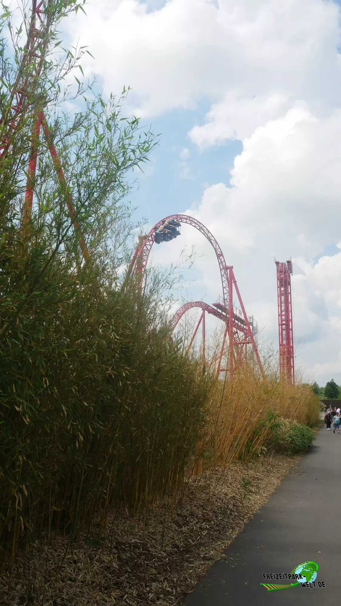 Nachdem dem Verlassen des Bahnhofes gelangt man über eine 180-Gradkurve vor den Lift. Dort wird der Zug gestoppt und wartet auf den Mitnehmer, der den Wagen den 32m hohen Turm hinaufschiebt. Der dann folgende 97-Grad-Drop fährt sich im Vergleich zu anderen Bahnen jenseits der 90 Grad sehr sanft. Von dort aus geht es direkt in eine tolle, weil besonders weich zu durchfahrende, Zero G-Roll. Dann folgt die Einfahrt in die Cobra Roll in der die quietschbunten Wagen wieder in Richtung Station abdrehen und den Rückweg antreten. Auch fahrtechnisch stellt die Cobra Roll einen Scheidepunkt dar, denn ab hier wird die gesamte Fahrt ruppiger. Teilweise werden die Schulterbügel berührt, was besonders in der Kurve zwischen den beiden Corkscrews zu Tage tritt. Hier sind leider Ohrfeigen an der Tagesordnung. Diese negativen Eigenschaften sind speziell in der letzten Reihe - trotz des kurzen Wagens - verstärkt spürbar.