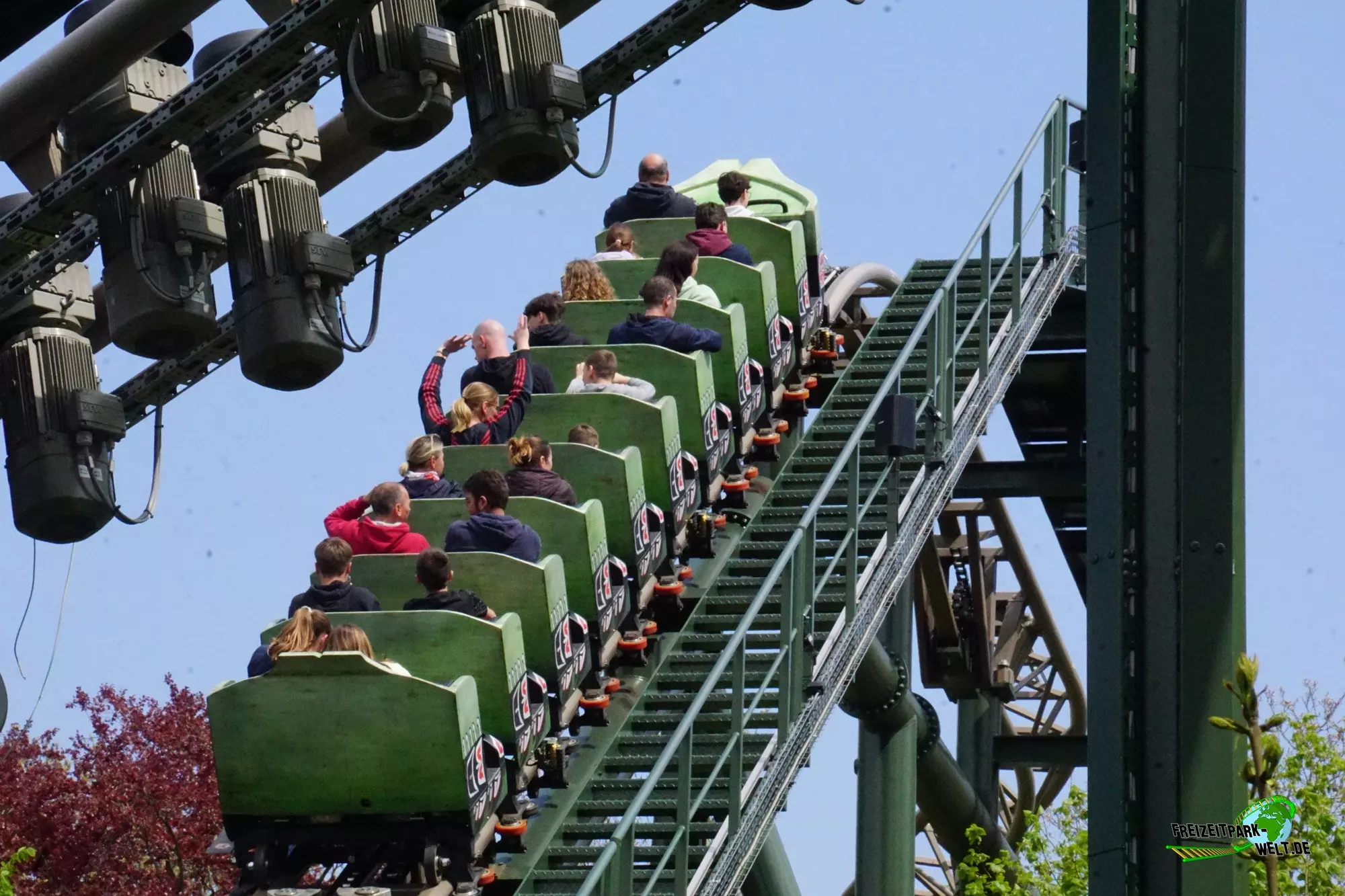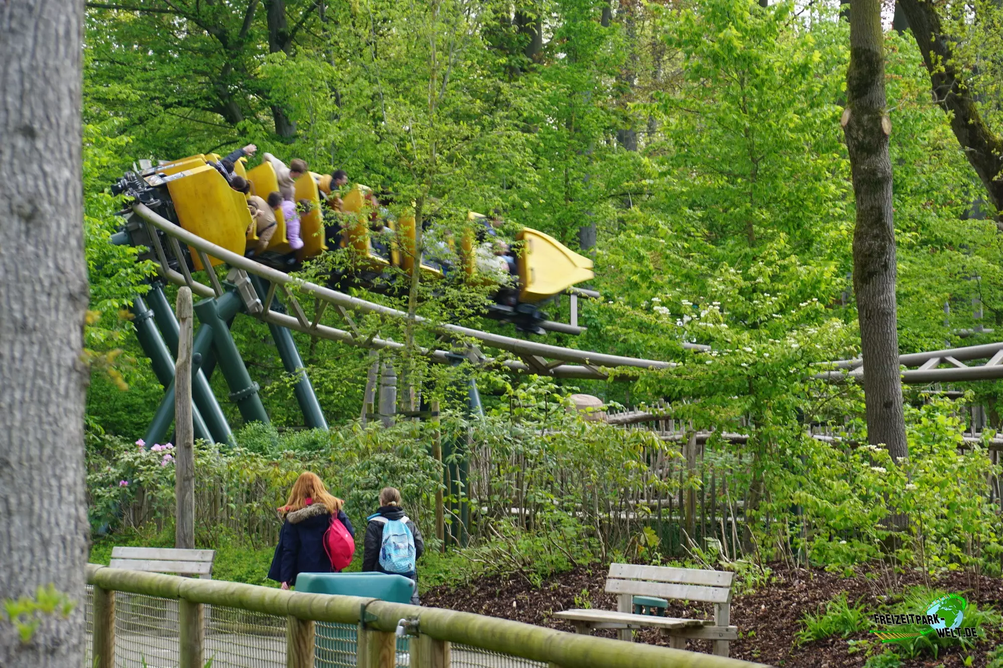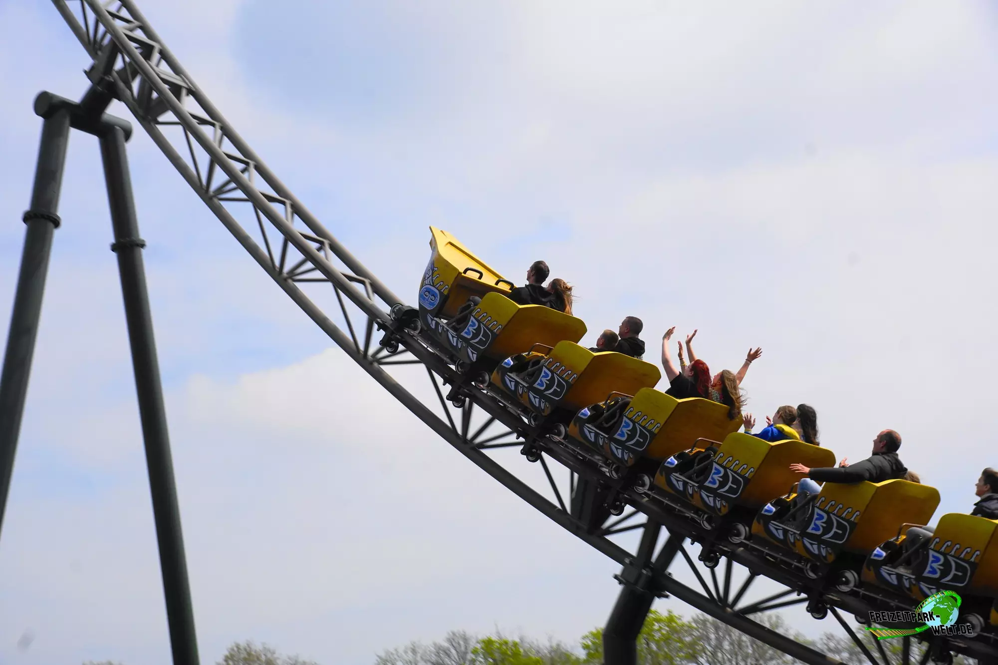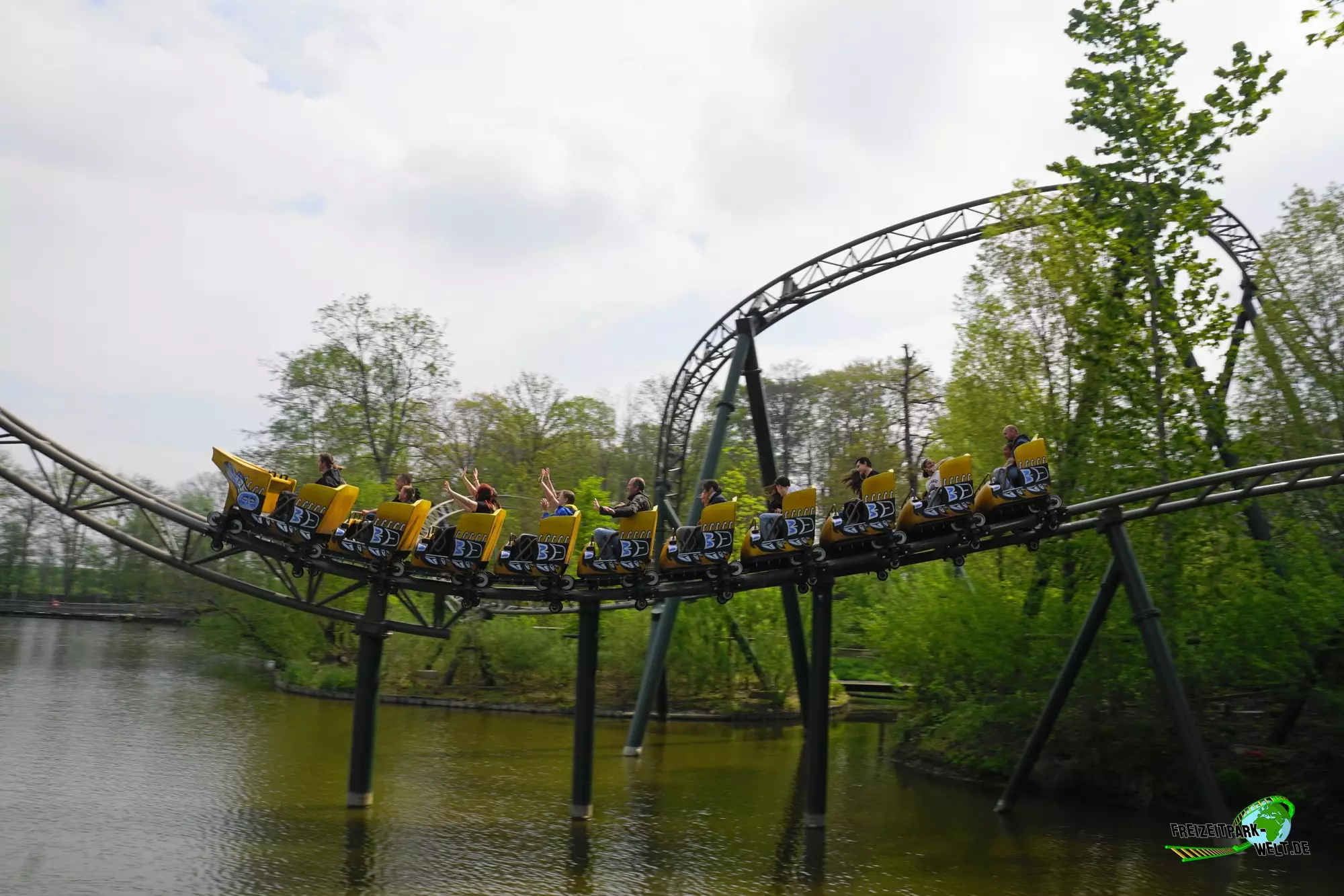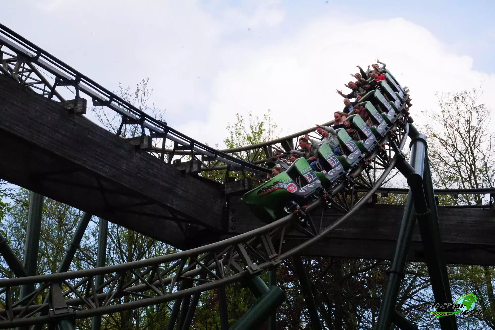Mit Wakala wurde im Corona-Jahr 2020 eine neue große Familienachterbahn in Bellewaerde eröffnet. Die Anlage wurde am Standort eines ehemaligen Affen-Freigeheges in den kanadischen Themenbereich integriert und ist von vielen Bäumen umgeben. Das hat den Vorteil, dass man nur schwer einen kompletten Überblick über die Strecke bekommt und auch eine Besonderheit des Tracks nicht vom Eingang aus einsehen kann. Wakala verfügt zum Schluss der Fahrt über ein so genanntes Spike-Element über dem See, also eine Rampe, die den Zug rückwärts in die Abschlussbremse bringt. Und das ist wirklich ein Highlight zumal der Zug hier fast bis ans Ende der Rampe gepusht wird. Das haben wir so auch noch nicht oft erlebt.