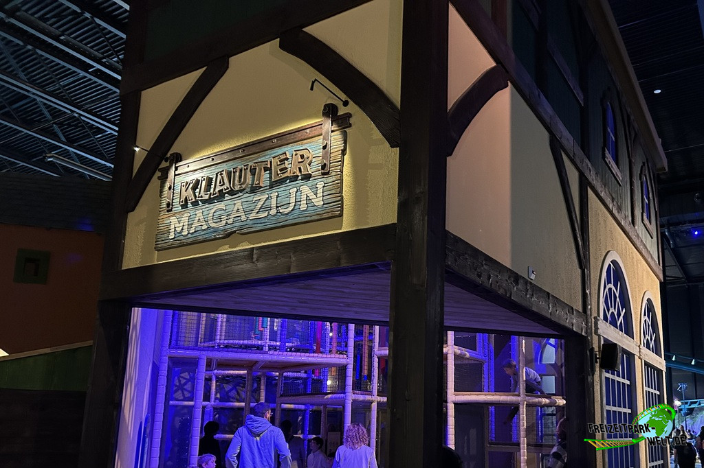 Auch die Indoor-Spielstruktur ist von außen nicht unbedingt als solche zu erkennen denn das Klettergrerüst ist mitten in einer der Häuserfassaden am Rand integriert.