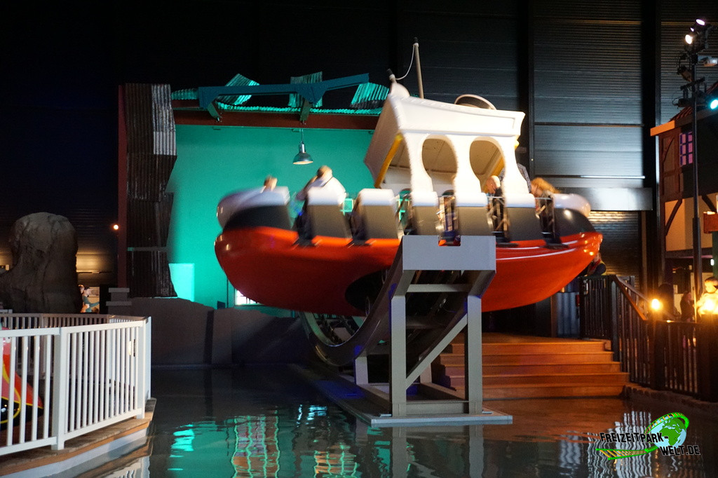 An der Hafenpromenade gleich hinter dem kleinen Dorf Rommeldam wartet der Zamperla - Rockin Tug auf seine Besucher. Zunächst sieht in diesem Fahrgeschäft alles normal aus, doch dann dreht sich alles wild im Kreis und die Schiffsfahrt scheint nicht mehr enden zu wollen. Dabei streift das Boot sogar eine daneben liegende ,Lagerhalle", die thematisch wunderbar umgesetzt wurde mehr Tiefe verleiht.