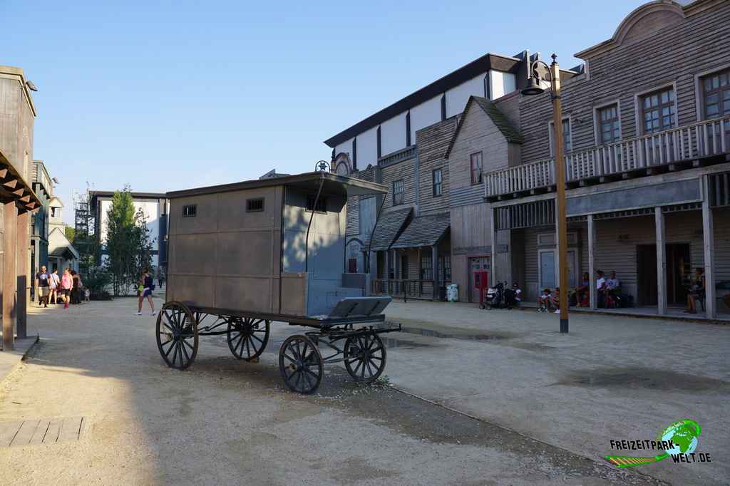 Der Far West-Bereich befindet sich am hinteren Ende des Parks zwischen dem Spaceland und Adventureland und muss leider ohne größere Highlight-Attraktionen auskommen. Dafür gibt es in den Häusern der Westernstadt versteckt, einige Walkthrough-Attraktionen sowie einen Autoscooter und Bumper Boats, die sich ebenfalls gut hinter den Kulissen verstecken.