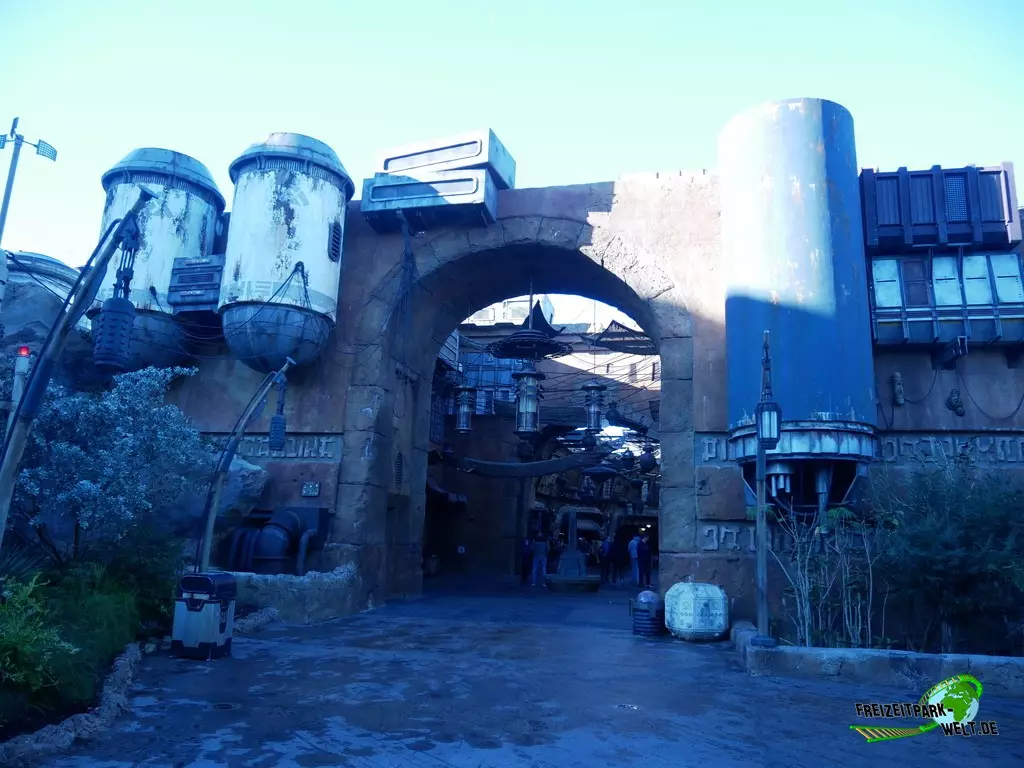 Galaxy's Edge spielt sich im Dorf Black Spire Outpost auf dem abgelegenen Grenzplaneten Batuu ab und bietet zwei Weltklasse Fahrattraktionen, mehrere Geschäfte und Restaurants und Entertainment an. Die Bauarbeiten begannen in beiden Themenparks am 14. April 2016, gut drei Jahre später, nämlich am 29. August 2019 fand die feierliche in den Disney's Hollywood Studios statt. Walt Disney Imagineering war als Aufsichtsorgan verantwortlich für die Umsetzung dieses gigantischen Projekts.