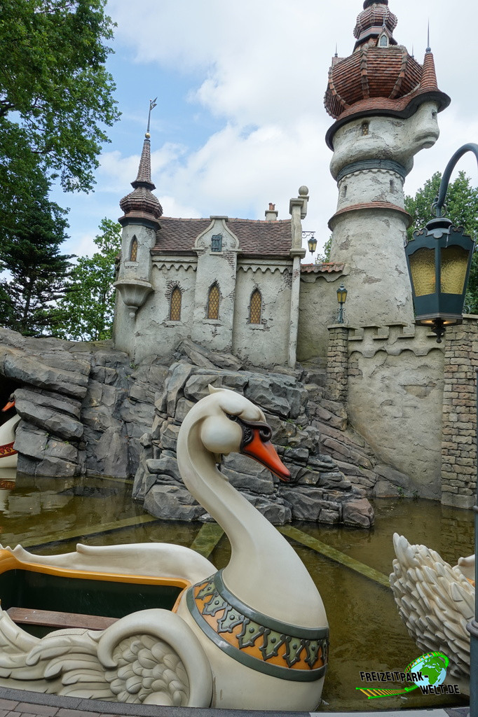 Besucher können auf einem der gut drei Meter großen Schwäne Platz nehmen oder zu Fuß in das Schloss gelangen und Elisa vom Ufer aus sehen. Somit ist Die sechs Schwäne das erste Märchen, das Groß und Klein aus zwei verschiedenen Perspektiven erleben können. Den nun insgesamt 30 Geschichten aus dem Märchenwald ist auch die aktuelle Ausstellung im Efteling Museum gewidmet. Spielerisch lernen die Besucher hier mehr über Die sechs Schwäne, Hänsel und Gretel, Frau Holle oder Des Kaisers neue Kleider.