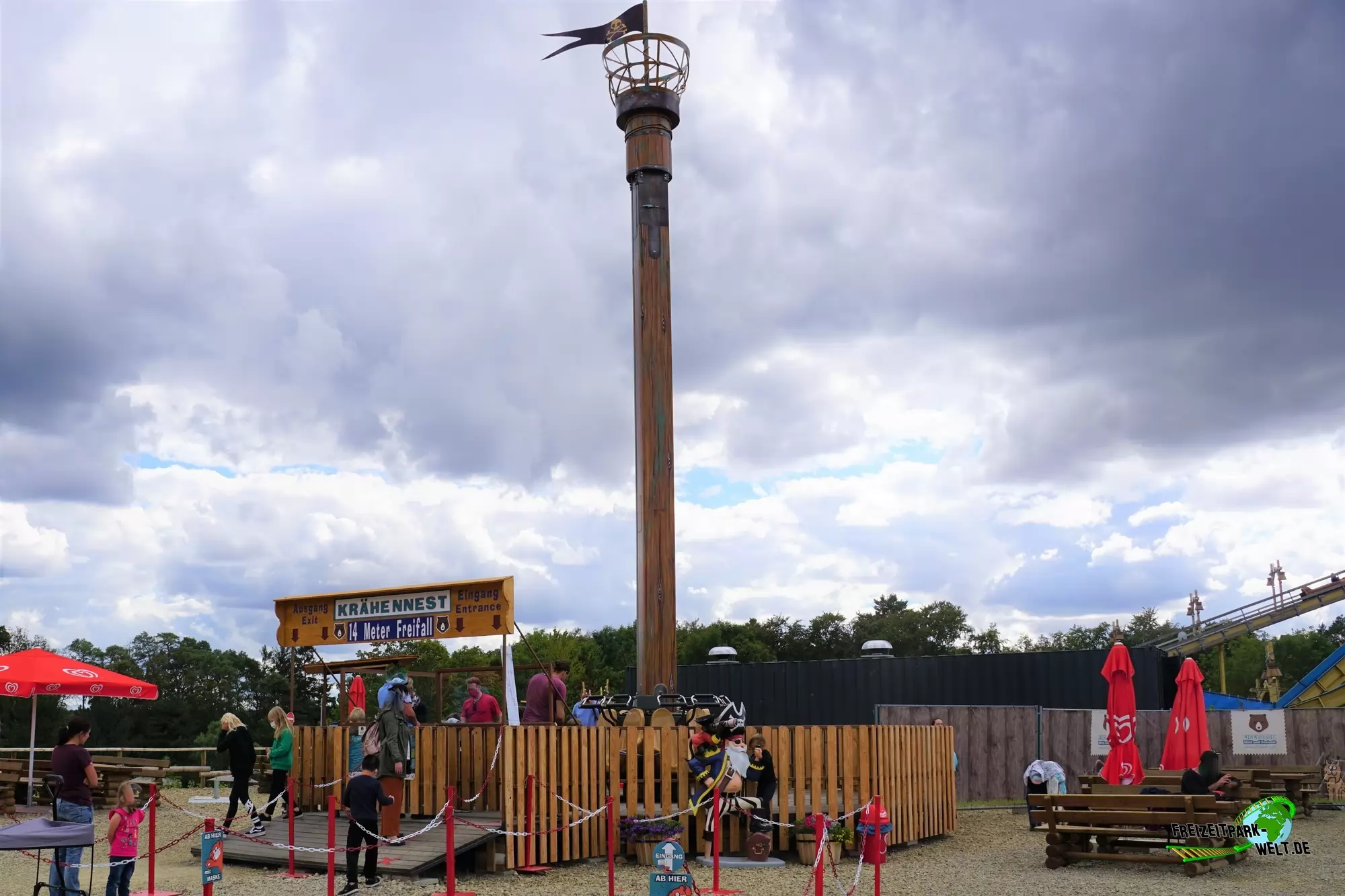 Das Krähennest ist neben dem Graviator die zweite Freefall-Attraktion, die seit der Saison 2020 für thrilligen Spaß im Eifelpark sorgt. Zwar geht es hier mit 14m nicht ganz so hoch, dafür aber gleich mehrmals. Und das dann sogar bei jeder Abfahrt mit einem leichten Bauchkribbeln, das man so fast auch bei den großen Freifalltürmen hat.