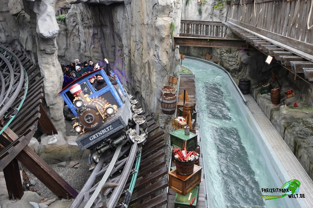 Das Layout ist bis auf eine kleinen Schlenker kurz vor Ende der Fahrt komplett gleich geblieben. Es geht zunächst in eine Rechtskurve die hinter der Station in eine große Helix führt und danach dann direkt in das Felsmassiv von Yomis Abenteuer Trail. Insbesondere die Interaktion mit der Tiroler Wildwasserbahn ist hierbei deutlich größer, teilweise fährt man parallel mit der Wasserbahn und kann sich zuwinken. Auch ein kleiner Dark Ride Teil ist vorhanden, aber kaum mehr als solcher wahrzunehmen. Somit hat sich der Charakter der Fahrt doch deutlich geändert, macht aber nach wie vor genau so viel Spaß wie zuvor. Darüber hinaus ist auch die Fahrt selbst deutlich weicher wie im alten Alpenexpress.