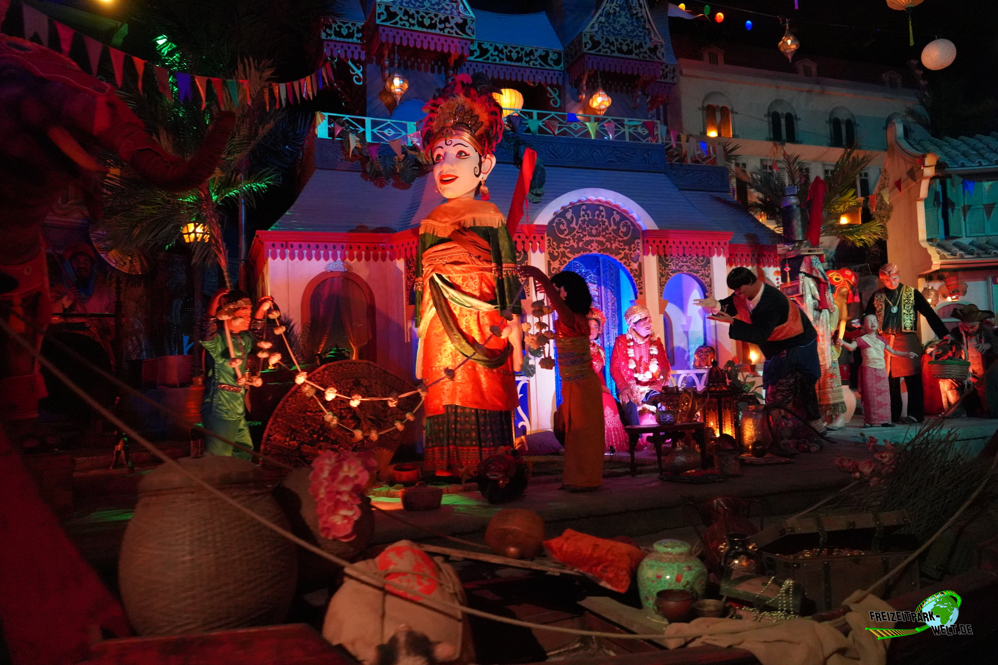 Übrigens gibt es noch ein nettes Gimmick, das vielen Fans vor der Eröffnung bereits Kopfzerbrechen bereitet hat. Erstmals wurde in Piraten in Batavia das Fahrsystem des Rocking Boat verbaut. Genau genommen ganz am Anfang rechts im Stelzendorf und in der letzten Dschungelkurve kann man mitunter ein Krokodil sehen, das ein kleines Boot verfolgt. Bei unseren fünf Fahrten am Eröffnungswochenende war dies allerdings nur recht selten der Fall. Sicher können wir uns hier in Zukunft auf etwas mehr Getümmel im Wasser freuen.