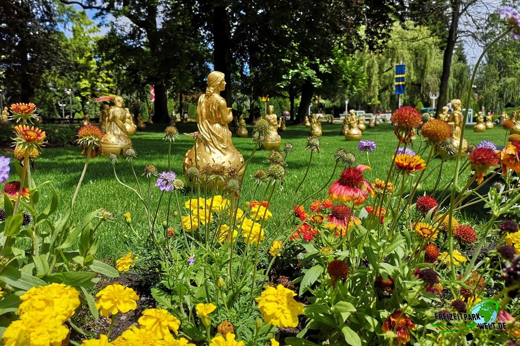 Direkt vor dem Europa-Brunnen wartet auch der Einstieg zur Europa-Park Eisenbahn, dem Panorama-Express.