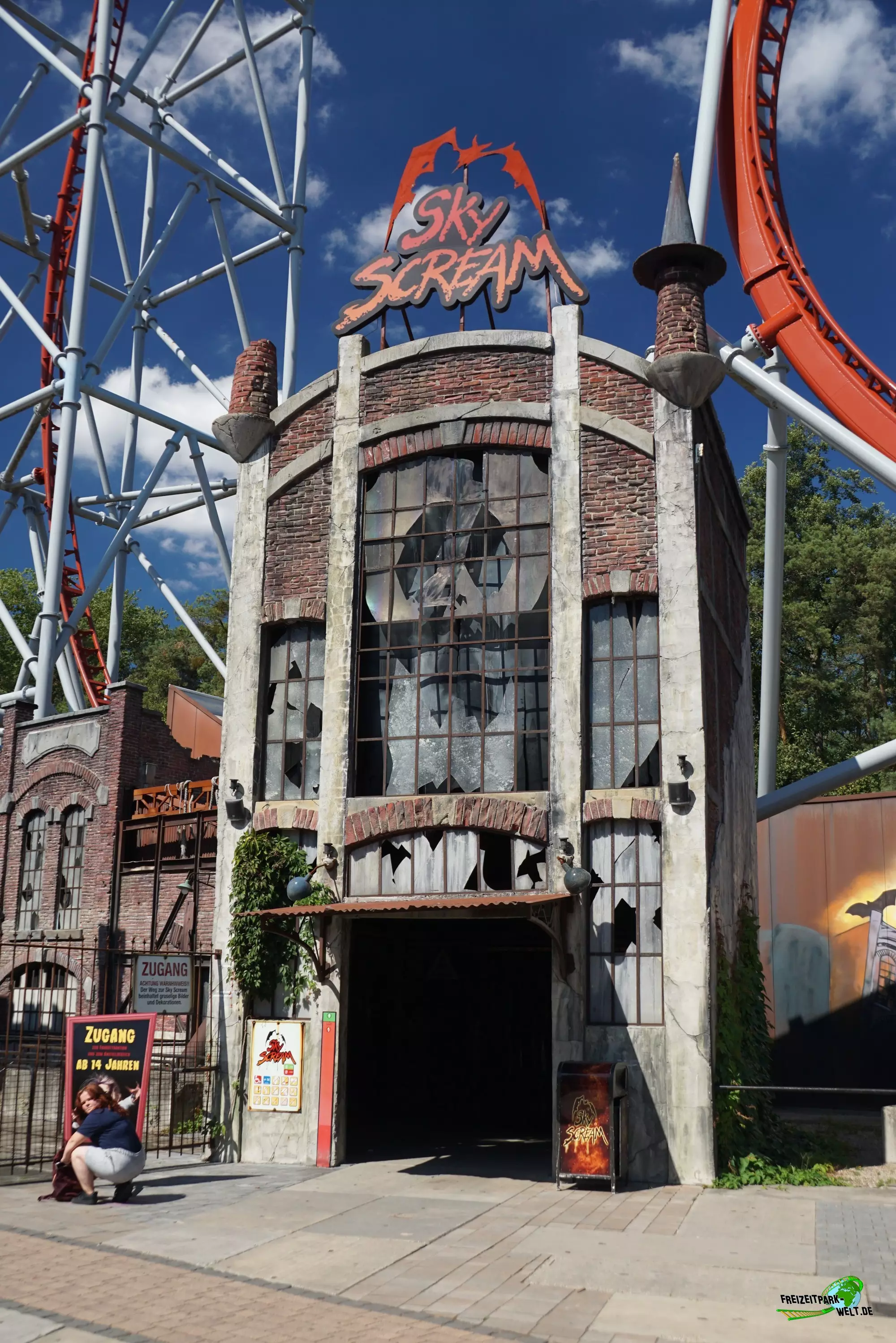 Die extreme Fahrt startet mit einer Vorwärts-, dann mit einer Rückwärtsbeschleunigung, wobei der Zug den Non-Inverted Loop rückwärts leicht berührt, jedoch nicht durchfährt. Bereits hier erzeugen die enormen Kräfte von Sky Scream ein Magenkribbeln. Anschließend durchfährt der Zug zum letzten Mal die Station und wird auf Höchstgeschwindigkeit beschleunigt, um mit hohen G-Kräften den höchsten Punkt der Anlage zu erreichen. Hier werden die Fahrgäste in einer Fassrolle auf den Kopf gestellt und schreien in Richtung Boden. Danach wird der Zug leicht abgebremst, um durch einen Vertikal-Drop beschleunigt den Non-Inversion-Loop zu durchfahren und schließlich wieder in der Station anzukommen. Unser Fazit: „kurz, aber heftig“. Die Bahn macht sehr viel Spaß, obwohl sie schnell vorbei ist. Sie bietet den Fahrgästen besondere Beschleunigungen und extreme Fahrfiguren. Das muss man in dieser Kombination erlebt haben.Themenbereich folgt