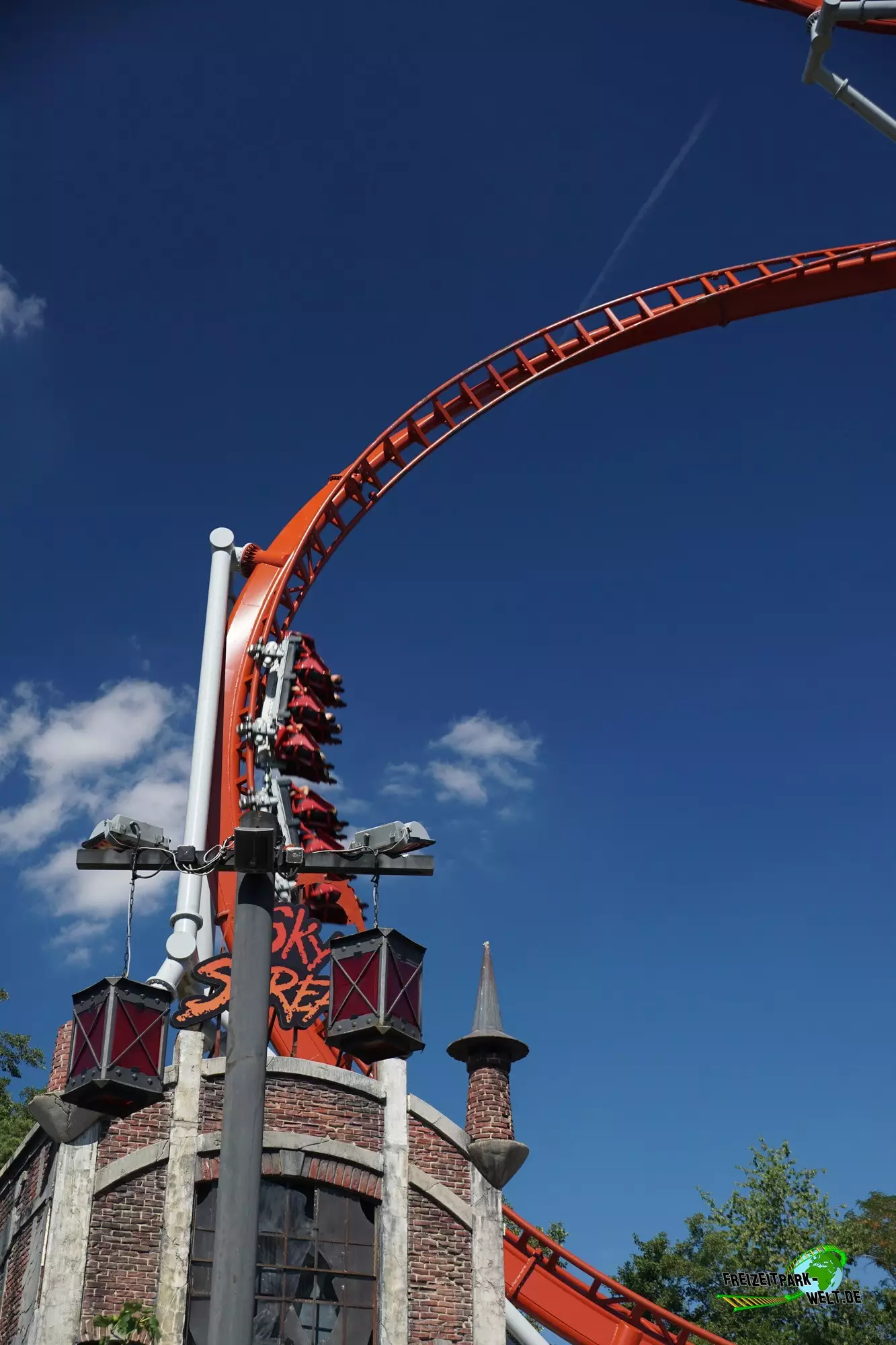 „Was für eine Spaß-Schleuder!“ ruft ein Achterbahnfan, der soeben zum ersten Mal die neue Katapultachterbahn mit dem Namen „Sky Scream“ im Holiday Park gefahren ist. Eine sehr treffende Beschreibung für diese besondere Bahn der amerikanischen Firma Premier Rides, welche sich bereits mit Bahnen wie den mittlerweile demontierten High Roller in Vegas oder Full Throttle im Six Flags Magic Mountain Los Angeles einen Namen gemacht hat. Der auf dem ehemaligen Gelände des Superwirbels durch die bekannte Firma RCS aufgestellte und am 12. April 2014 eröffnete Sky Scream ist baugleich mit der seit 2012 betriebenen Anlage „Superman –ultimate flight-“ im Six Flags Discovery Kingdom Kalifornien. Auf einer Länge von 263 Metern wird der Zug zweimal vorwärts und einmal rückwärts mit bis zu 99,8 km/h auf eine Höhe von 45,7 Metern geschossen, wobei heftige G-Kräfte von bis zu 4,5 G positiv und -1,5 G negativ abwechselnd auf die waghalsigen Fahrgäste einwirken. Insgesamt 12 Personen haben Platz in zwei Wagen zu je 6 Personen, wobei immer 2 Personen nebeneinander sitzen. Highlight ist der langsam durchfahrene In-Line-Twist am höchsten Punkt der Bahn, wobei die Arme über Kopf voll ausgestreckt werden können, denn das Rückhaltesystem sichert die Fahrgäste im Hüftbereich. Auch an den Schienbeinen ist ein Widerstand installiert, welcher mittlerweile nicht mehr unangenehm drückt. Eine weitere Besonderheit ist der sogenannte Non-Inverted-Loop, wobei der Looping am höchsten Punkt nicht innen, sondern mit ein wenig Airtime verdreht außen befahren wird.