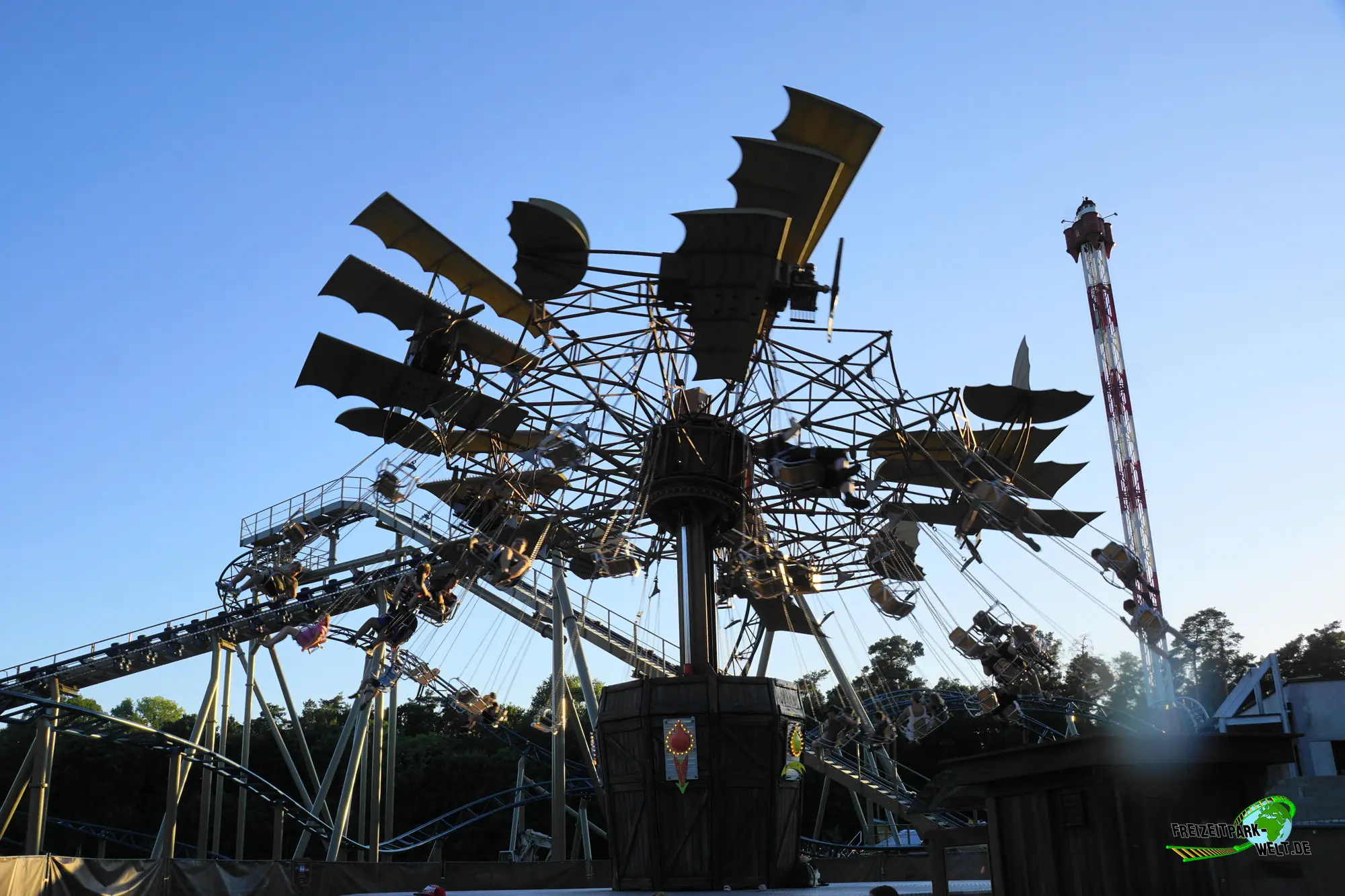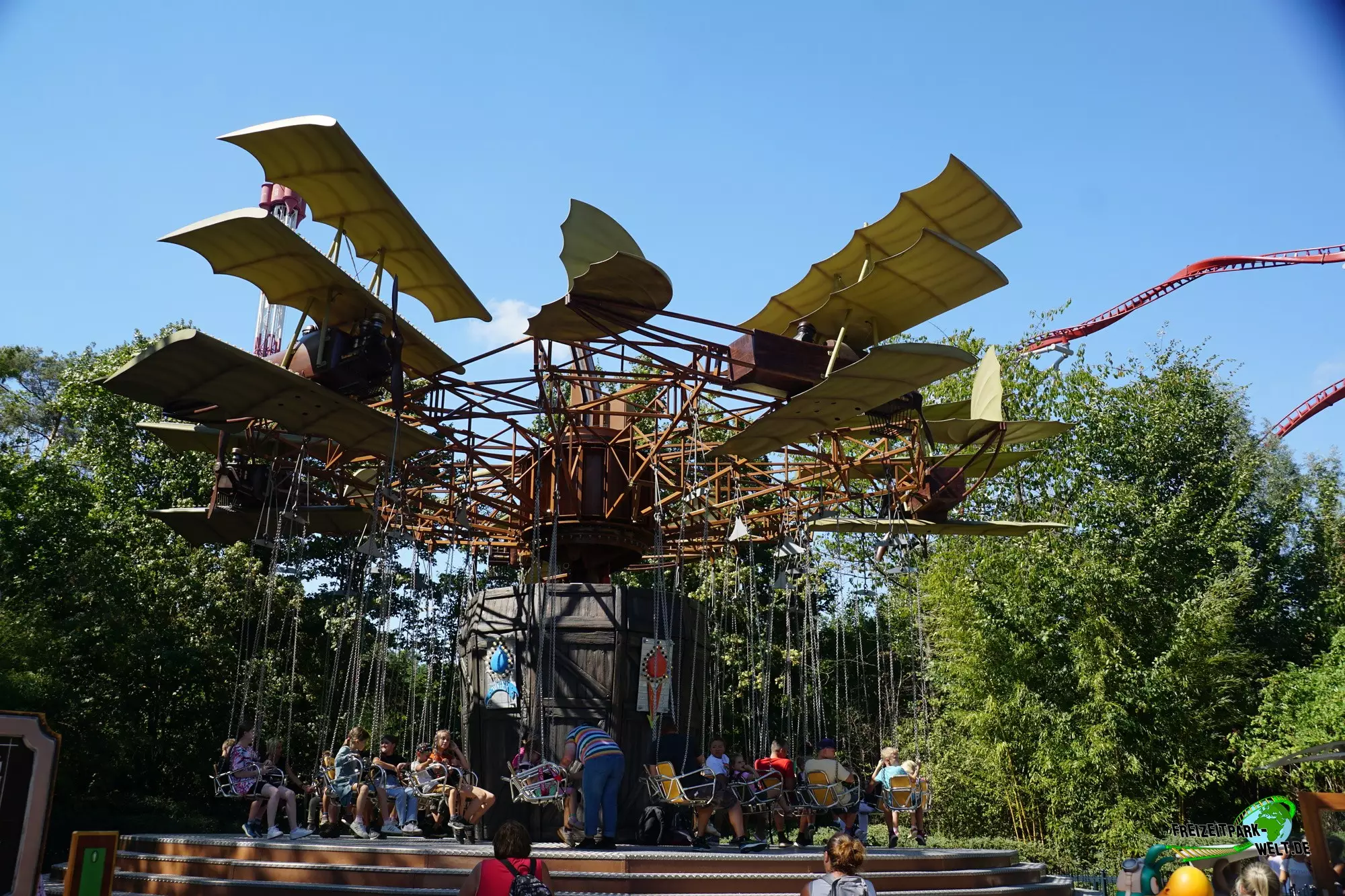 Und das Vergnügen kommt auch hierbei nicht zu kurz. Wie bei einem Kettenkarussell üblich gleitet man während der Fahrt in einer Kreisbewegung durch die Luft. Im Gegensatz zum großen Bruder allerdings in nur wenigen Meter Höhe und damit absolut familientauglich. Und Dank der Mindestgröße von nur 100cm kommen beim Wellenflug fast alle Familienmitglieder auf ihre Kosten. Eine schöne Aussicht auf den umgebenden Themenbereich AirShow inklusive.