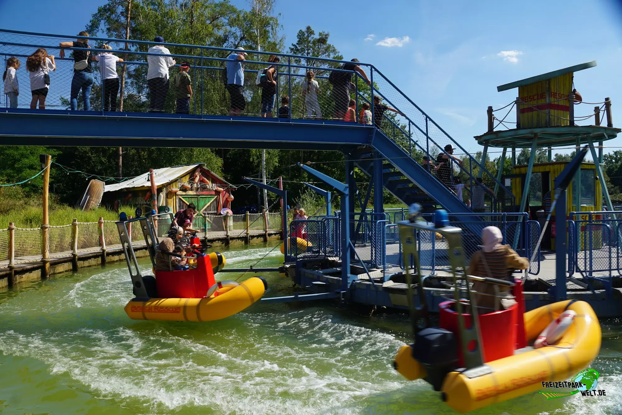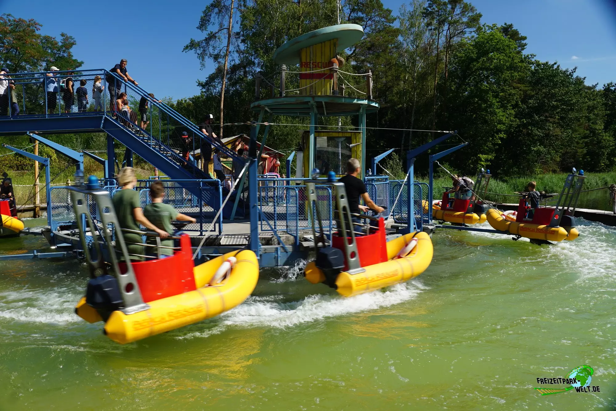 Neun Gondeln drehen sich im Kreis um eine Insel, allerdings kann individuell und interaktiv das unbefestigte Heck nach außen geschwenkt werden, wodurch spaßige Fliehkräfte entstehen. Jeweils zwei Fahrgäste können ab einer Körpergröße von 1,20 Metern gemeinsam eine Gondel benutzen, die wie ein gelbes Rettungsschlauchboot thematisiert ist. Ab 1,00 Meter ist die Begleitung eines Erwachsenen vorgeschrieben. Mit etwas Geschick und Übung werden durch Slalom Bewegungen sogar Wellen erzeugt, die bis zu den Zuschauerplätzen hoch schlagen.
