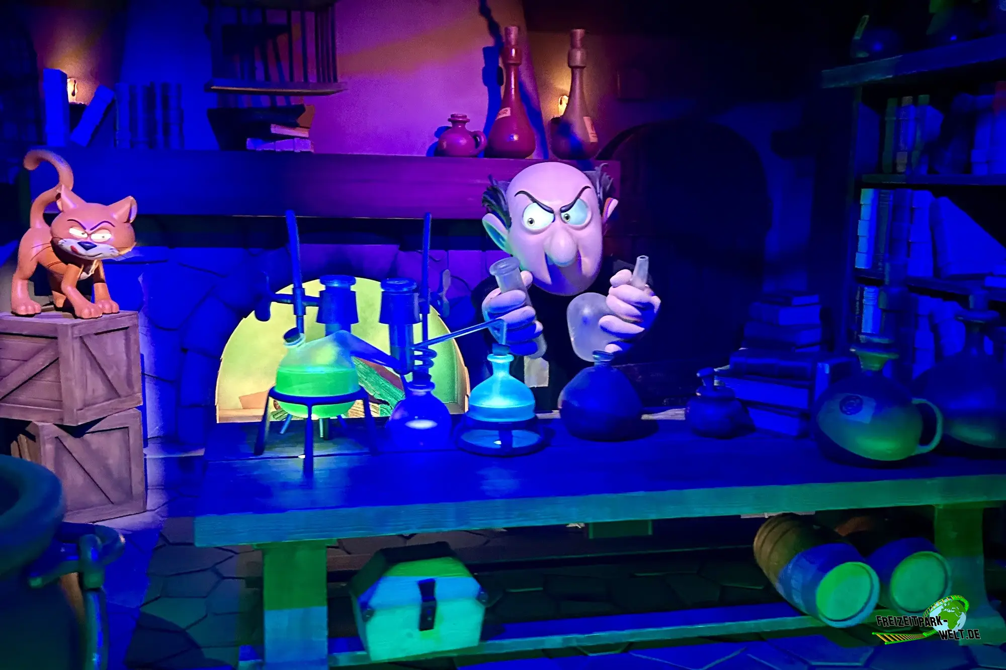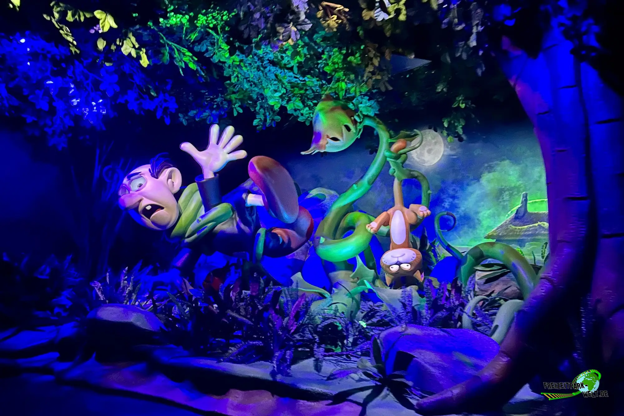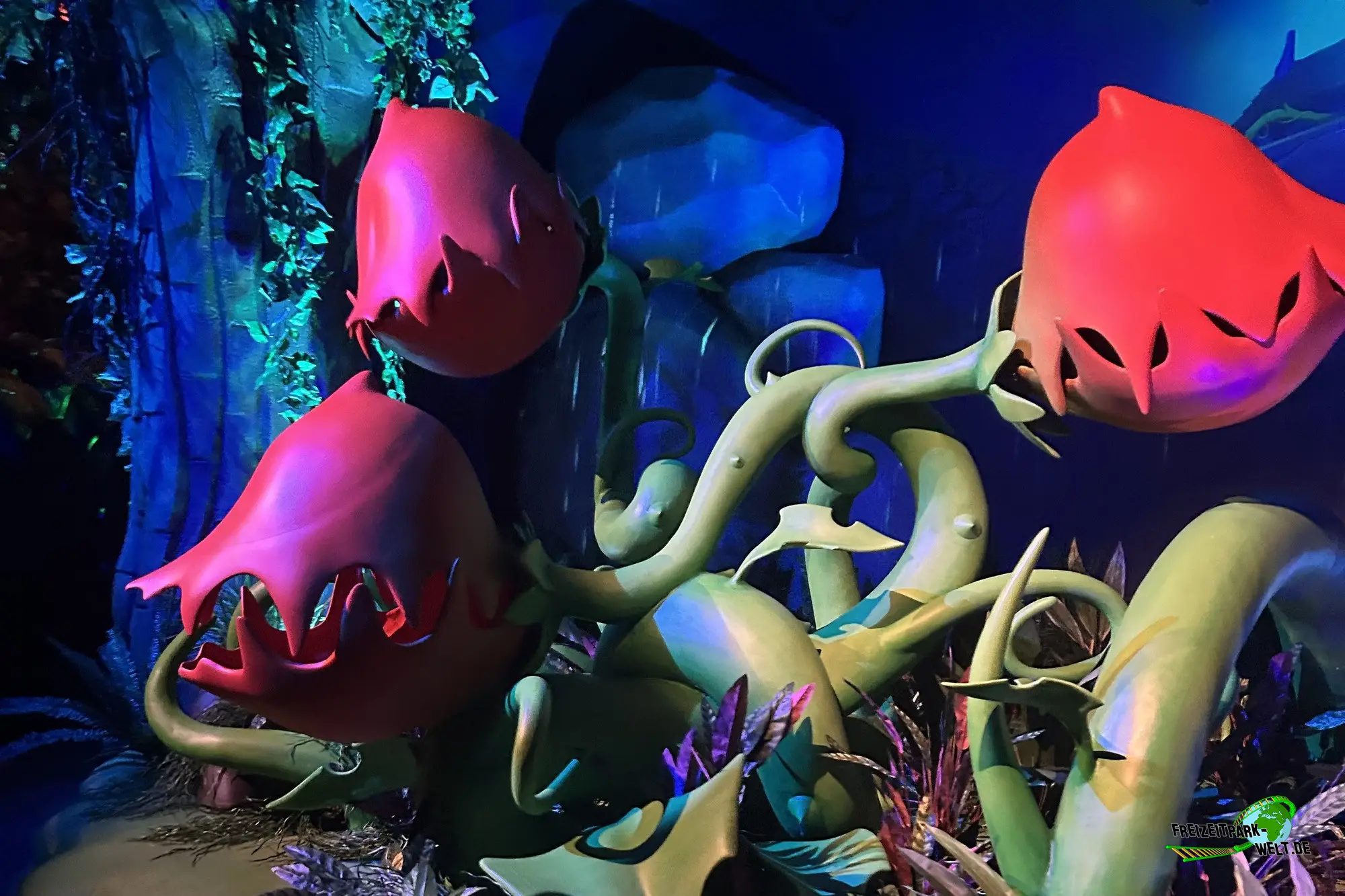 Gargamel hat sich mal wieder etwas Neues ausgedacht um den Schlümpfen den Garaus zu machen und so hat er im geheimen einen Zaubetrank entwickelt, der aus normalen Pflanzen große Monsterblumen erschafft, die das Schlümpfe-Dorf terrorisieren. Aber die Schlümpfe lassen sich nicht unterkriegen und entwickeln zusammen mit Papa Schlumpf und Schlumpfine ein Gegenmittel, das die Blumen wieder zu ganz normalen Blütenwundern werden lässt und richten im Gegenzug die Monsterblumen auf Gargamel selbst. Und so kann auch im Schlumpfen-Dorf schon bald wieder Frieden einkehren und die nächste Party gefeiert werden. All das könnt ihr im neuen Schlümpfe Abenteuer im Plopsaland Deutschland erleben.Die Fahrt ist wirklich hochwertig gemacht und überzeugt durch zahlreiche Schlümpfe Figuren, die durch echt wirkende Augen-Mimik zum Leben erwachen. Zudem gibt es auch viele gelungene Lichteffekte, die entweder eine gruselige Regen-Atmosphäre erschaffen oder einfach bunt zu einer Party Szene passen.