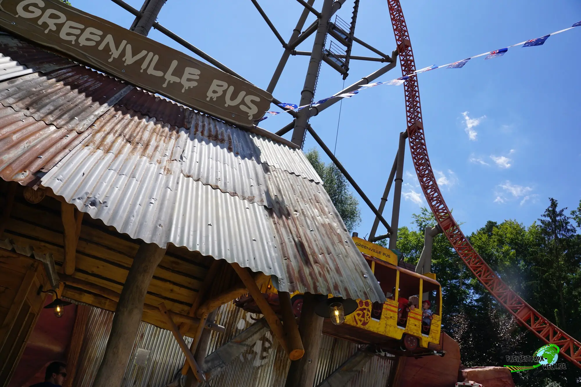 Eine Fahrt im Greenville Bus ist auch für kleine Abenteurer in Basecamp unterhalb von Expedition GeForce geeignet und bietet eine lustige Auf- und Abfahrt in einem überdachten Bus. Das Bauchkribbeln ist so gut wie nicht vorhanden auf dieser wirklich sehr kinderfreundlichen Fahrt.