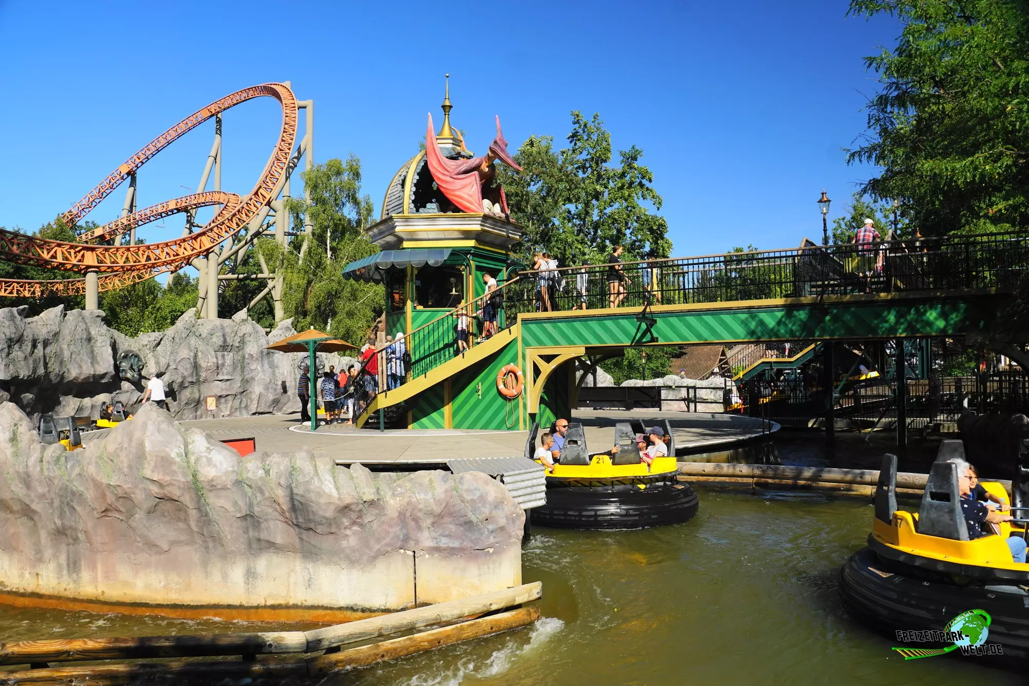 Dino Splash ist die Neuinterpretation des ehemaligen Donnerfluss, der sozusagen ein Dino der Intamin Rapid River ist und Deutschlands erste Anlage dies Typs war. Während das Thema in die Jahre gekommen war, ist die Fahrt selbst weiter ein Klassiker gewesen und befindet sich in der Mitte des Holiday Park. Ideal also um mit einer Neugestaltung viele neue Fans zu gewinnen...