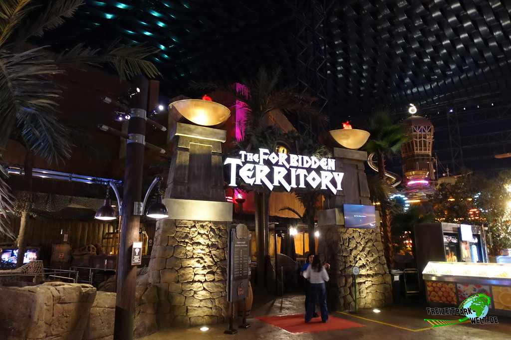 Ein weiterer State-of-the-Art Dark Ride ist neben Avengers: Battle of Ultron auch der Forbidden Territory-Ride im Themenbereich Lost Valley. Auch hier ist die amerikanische Vorlage klar zu erkennen, denn die Indiana Jones Fahrten oder noch vielmehr Dinosaurs! in Disneys Animal Kingdom bieten ähnliche Fahrsysteme und Erlebnisse.