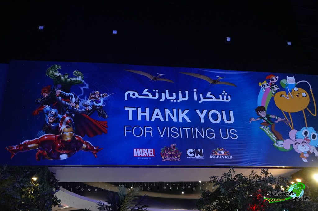 Erstklassige Lizenzen wie Marvel (Disney), für einen Indoor-Freizeitpark ein sehr gutes Fahrgeschäfts-Portfolio mit zum Teil hervorragender Thematisierung, netten Mitarbeiter*Innen und besucherfreundliche Öffnungszeiten stehen zum Teil lausiger Abfertigung, kein „Meet & Greet“, unsauberen Ecken und einem viel zu hohen Eintrittspreis gegenüber. Wir hatten viel Spaß im IMG World of Adventure, erlebten wirklich tolle Abenteuer in erstklassigen Fahrgeschäften, aber wir haben es größtenteils in anderen Freizeitparks in den VAE besser erlebt. Das ist „Jammern“ auf sehr hohen Niveau. In Europa würde solch ein Freizeitpark sicher Millionen Besucher an einem geeigneten Standort anlocken, in den VAE ist er einer von vielen guten Freizeitparks und außer sehr vielen Schulklassen lockte er an unserem Besuchstag kaum anderweitige Besucher als uns zwei deutsche Touristen und zwei Hände voll Russen und Engländer an. Gründe dafür liegen aus meiner Ansicht auf der Hand. Neben dem viel zu hohen Eintrittspreis liegt der Freizeitpark ganz alleine in der Wüste, die nächsten Hotels konnten wir nach 20 Minuten Fahrzeit erblicken und bietet keinerlei gute Verkehrsverbindung außer mit Auto oder Schulbussen (Achtung Ironie!) an. Selbst zum viel weitergelegenen Dubai Parks & Resorts werden vom nächstgelegenen Metrobahnhof 16 Busfahrten (8 Hin-8 Zurück) täglich zum Resort angeboten, so etwas gibt es leider zu IMG World of Adventure nicht. Aber insgesamt kann man einen Besuch in diesem Freizeitpark empfehlen.