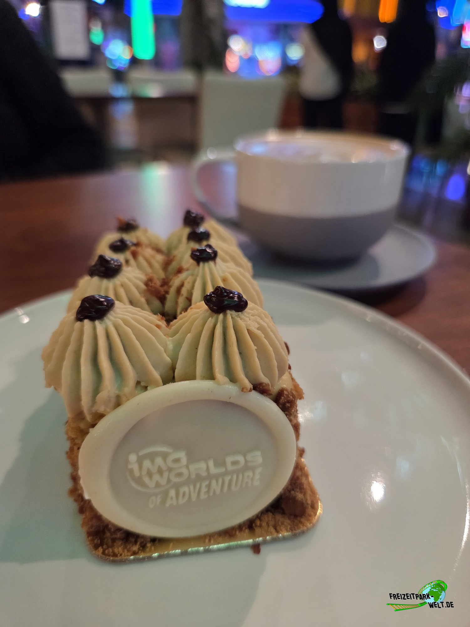 Im IMG Boulevard Cafe‘ haben wir dann zur Erholung ein sehr leckeres (mit umgerechnet 9 Euro zu teures) Stück Kuchen gegessen und zwei Kaffee (für jeweils 4,50 Euro) getrunken und uns auf Wiederholungsfahrten im nunmehr leereren Freizeitpark vorbereitet. Das „The Haunted Hotel“ öffnete leider wieder erst um 18.00 Uhr, so dass wir diese Attraktion leider nicht mehr in Augenschein nehmen konnten.