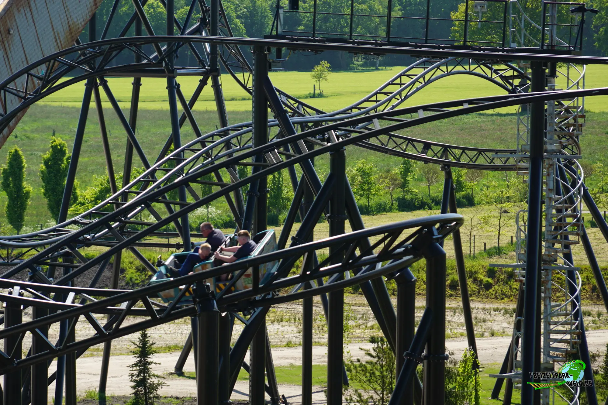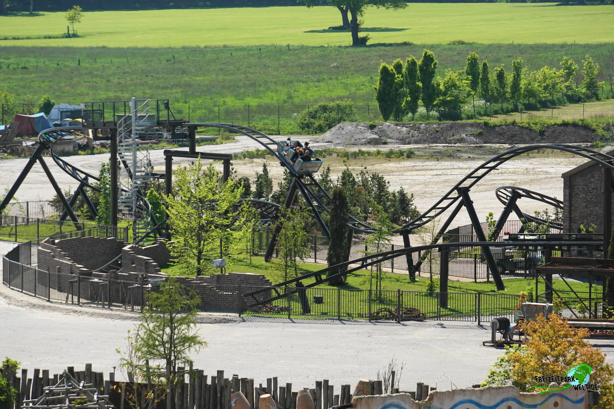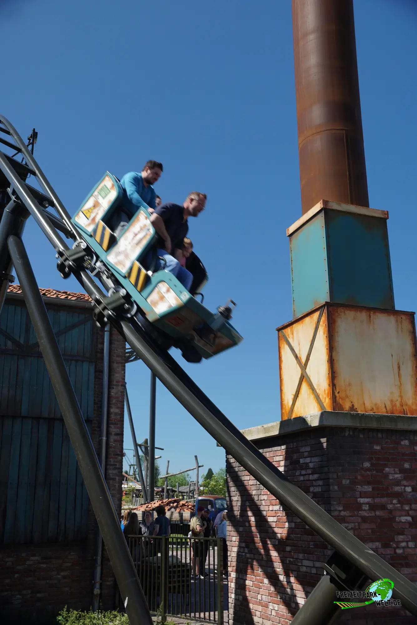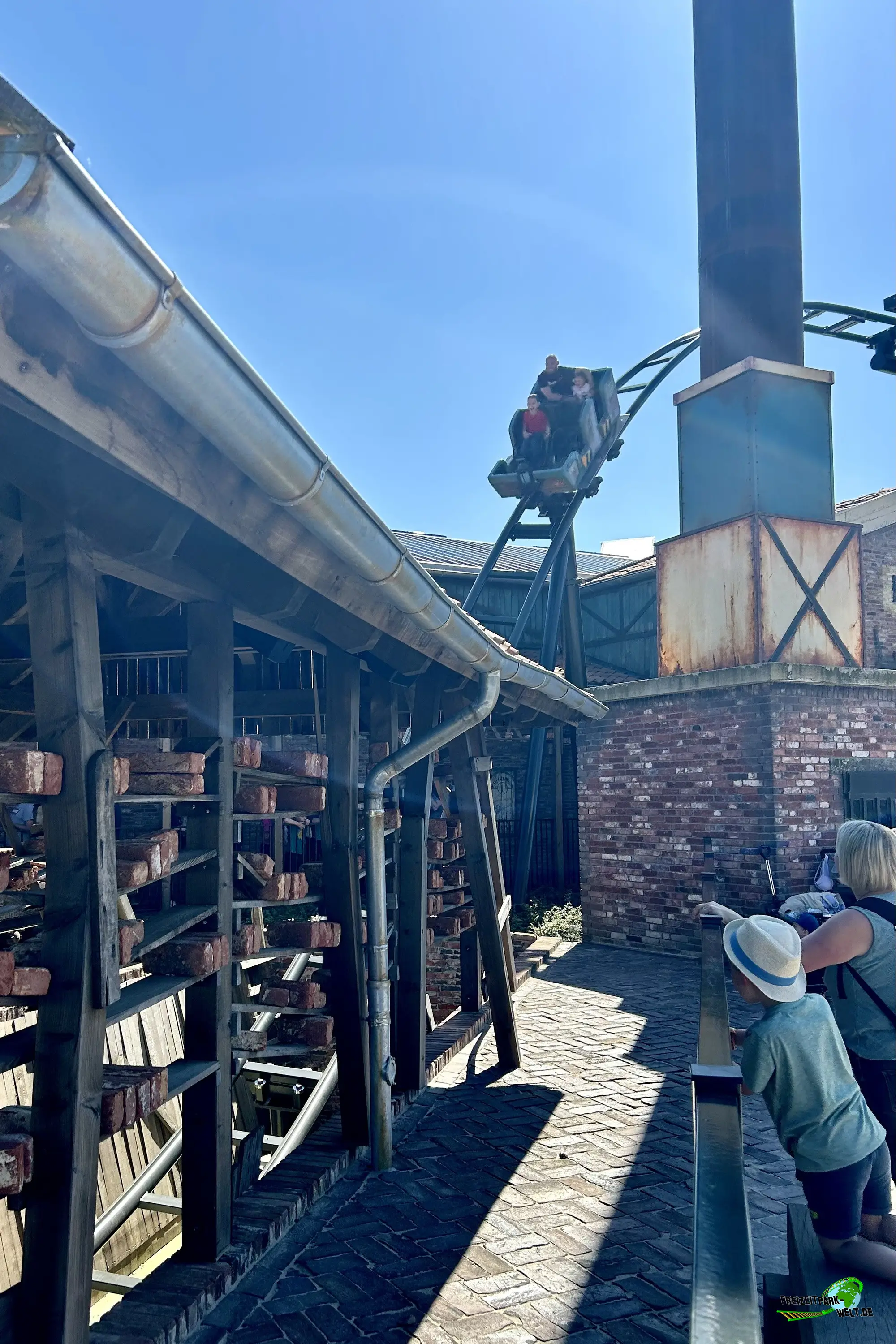 Dann geht es auch schon los. Taschen können in der Station abgestellt werden und man besteigt einen von 6 Chaisen, die jeweils für 4 Personen, 2 pro Reihe, Platz bieten. Lapbar schließen und es kann losgehen. Ein kurzer Hügel mit Reibrad-Antrieb führt in die erste Szene, den Ringofen der Ziegelei ein. Doch es gibt Startprobleme und nach einer sanften 180°-Kurve kommen wir auf einer Geraden zu stehen. Zu unserem Glück sorgt jedoch das Irrlicht Lütje für die Zündung und kann den Ofen starten. Wir werden sanft rückwärts beschleunigt und können die Szene nochmal richtig genießen. Auch das Irrlicht ist nochmal zu sehen. Bei der nächsten Durchfahrt geht es dann aber mit viel Schwung nach draußen und man saust über zwei sanfte Hügel in Richtung Lift. Ab hier geht es dann so richtig aufwärts auf 21m Höhe. Der Clou: Dank eines Tunnels bekommt man bis kurz vor dem höchsten Punkt gar nichts von der Höhe mit. Zudem ist auch das Irrlicht nochmal im Lift aktiv mit Sound- und Lichteffekten. Dann haben wir die Kuppe erreicht und sehen unter uns fast keine Schiene mehr. Der überraschend steile Drop ist aber nur kurz und wir sausen in einer langgezogenen Rechtskurve wieder hinauf, bevor es mit einem Double-Down in die erste Zwischenbremse geht. Es folgt die einzige typische Wilde Maus-Kurve bevor wir mit eigentlich viel zu viel Schwung in eine steile Linkskurve rasen. Laterale Kräfte inklusive. Eine weitere Zwischenbremse folgt und gleich danach der höchste Drop während der Fahrt, der durch eine kleine Ziegelhütte führt und dann in einem Non-Inverted Immelmann mündet. Ebenfalls ein Element, das es so bisher noch nicht gab. Der Rest der Fahrt ist dann schon wieder klassischer mit tiefen Camelbacks und steilen Abwärtskurven, die in eine kleine Ziegelschlucht unterhalb des Bodenniveaus führen. Dann geht's wieder aufwärts und wir erreichen die Abschlussbremse.