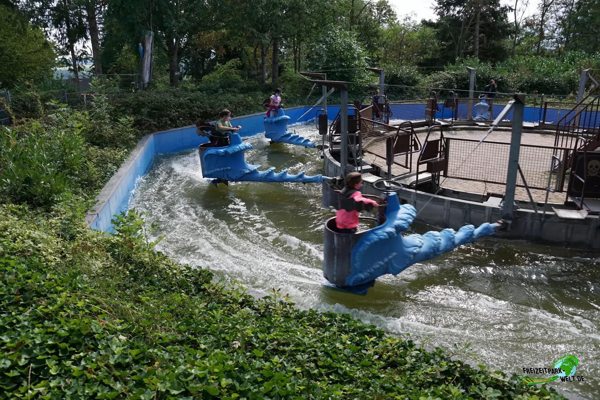 Ein besonders spritziges und actionreiches Vergnügen im Wild-und Freizeitpark Klotten ist das Wildwasser-Rondell, dass man direkt am Spielplatz nahe des Eingangs findet. In kleinen Gondeln, die mit bis zu 2 Personen besetzt werden können, gehtes durch das Wasser. Dabei kann man über die Lenkung selbst bestimmen, ob man lieber innen oder außen fahren will.