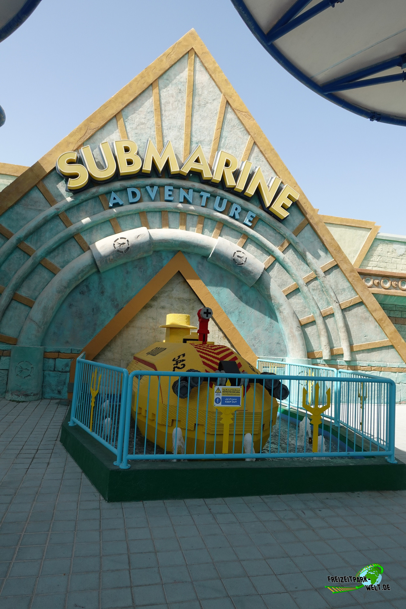 Während es im Miniland angenehm „kühl“ mit 24 Grad war, zog die Sonne und Temperaturen nunmehr um knapp 35 Grad (es war der heißeste Tag unserer Tour) uns zu den weiteren Attraktionen im Legoland Dubai. Es ging als Erstes nach Ägypten wo wir das „Lost Kingdom Adventure“ der interaktive Dark Ride von MACK Rides mit keiner Minute Wartezeit in Augenschein nahmen. Sehr schön thematisiert, aber die Fahrt haute uns nicht aus den Socken. Der gesamte Themenbereich „Adventure“ war erstklassig thematisiert, aber die Fahrgeschäfte lockten uns trotz nicht vorhandener Wartezeiten nicht zu Wiederholungsfahrten. Die „Wave Racers“ das Wild Water Rondell von Zierer ließ sogar ein paar Wasserspritzer an unsere Haut kommen, was bei der Hitze sehr angenehm war. „Submarine Adventure“- ein Submarine Ride von MACK Rides lud uns zwei „alleine“ in ein U-Boot und anschließend konnte man u.a. Haie und andere Meeresbewohner auf einer 4 Minuten langen andauernden Fahrt bewundern.