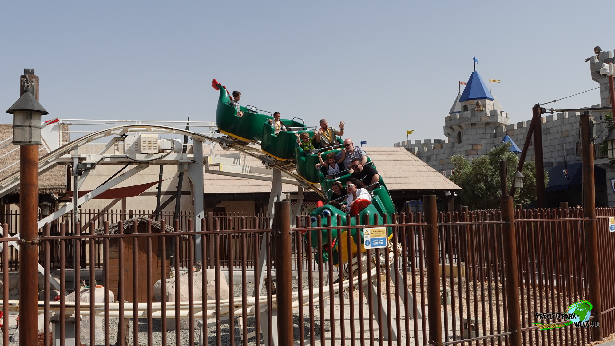 Auch sonst gibt es viele Parallelen zwischen der deutschen Drachen-Variante und der Wüsten-Version, denn auch das Layout der Achterbahn wurde kopiert. Es erwartet euch also ein sehr schöner Dark Ride-Teil mit mittelalterlichen Burg-Szenen und später als Highlight einem Drachen. Danach droppt der Zug vor dem ersten Lift in einen schmalen Tunnel bevor dann im Hauptteil alles im Außenbereich stattfindet. Die Fahrt ist familientauglich und bietet dennoch ordentlich Geschwindigkeit, so dass auch größere Kinder und Erwachsene Spaß haben. Insgesamt eine tolle Achterbahn und ein Must Do, wenn man mal hier ist.