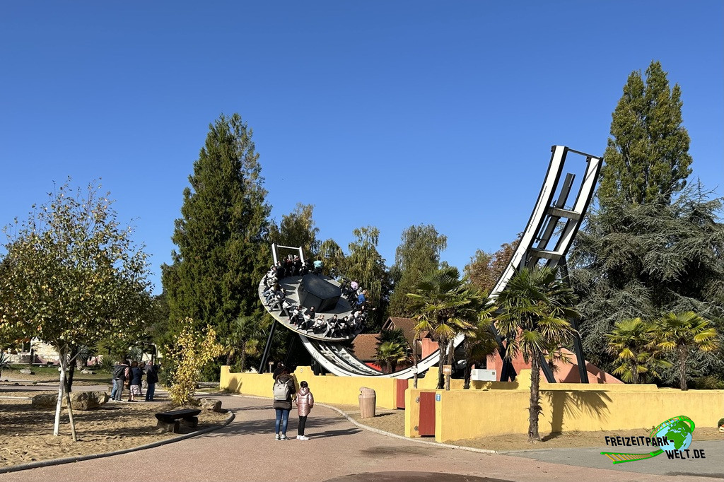 In Mer de Sable präsentiert sich das Fahrgeschäft mit weniger Lichteffekten, macht aber dank richtiger Station eine gute Figur in der Wüstenumgebung des vorderen Themenbereichs. Und die Fahrt ist mittlerweile sowieso ein richtiger Klassiker. Diese kleine Variante ist sogar etwas intensiver als die großen Disc'O Coaster und so sollte man durchaus etwas Leidenschaft für derartige Anlagen mitbringen.