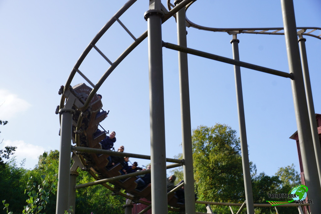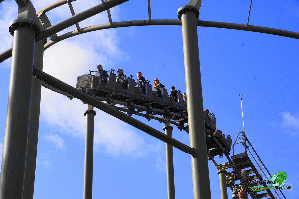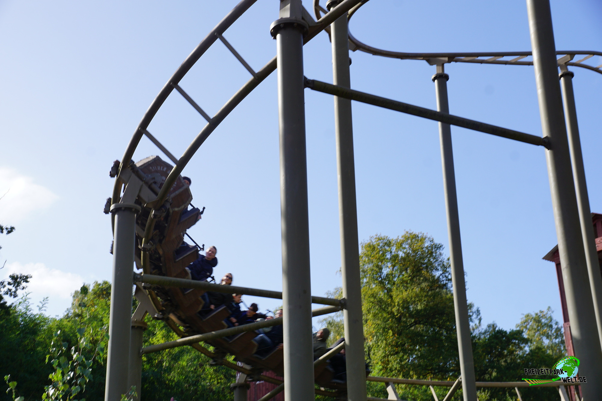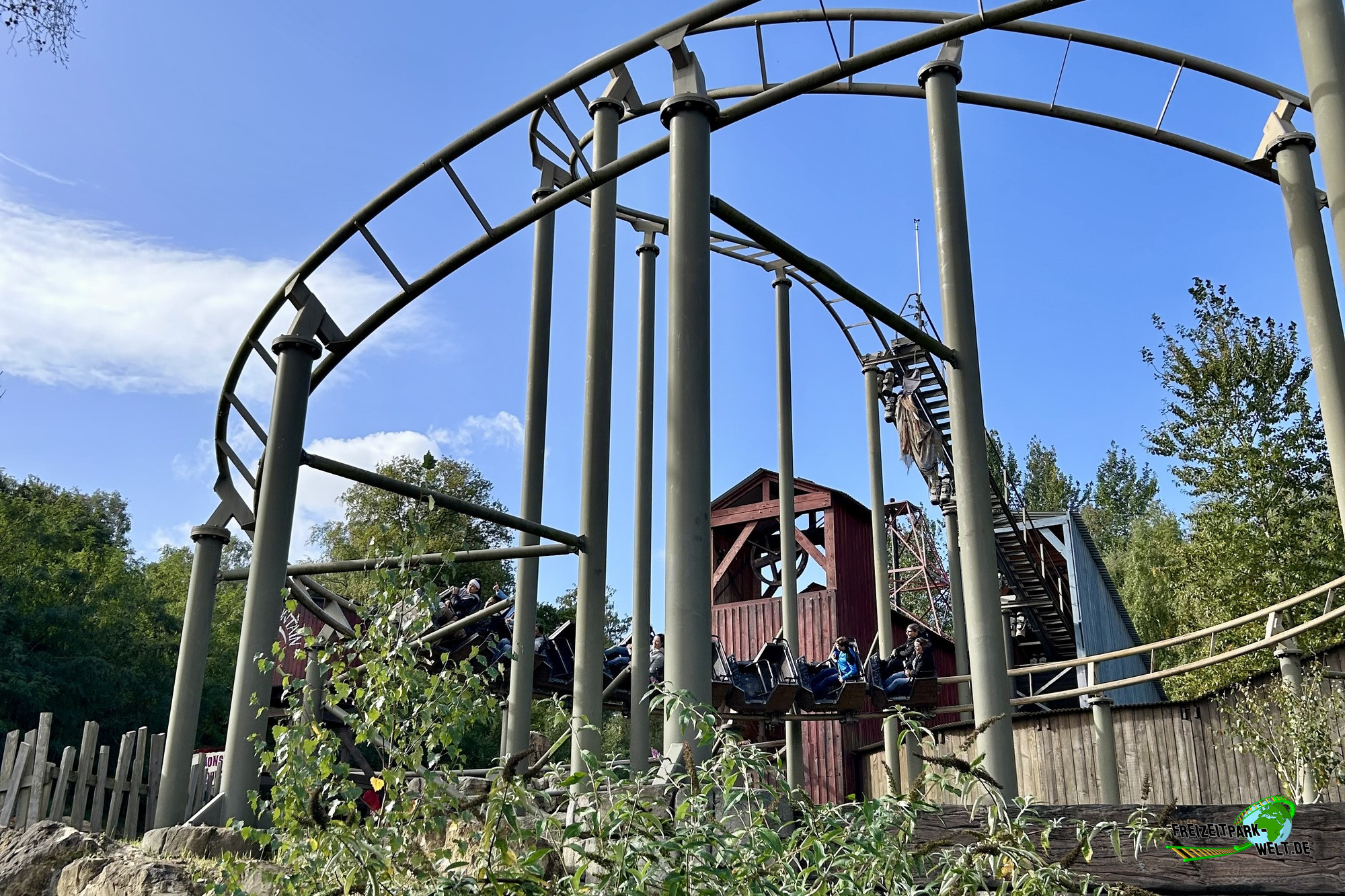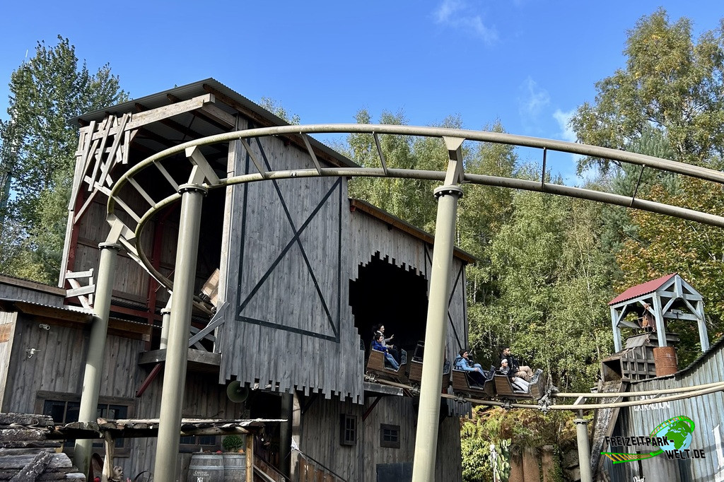 So fährt man z. T. durch einen alten Minen-Schacht und schon der Lifthill ist komplett umhaust, was zu einem weiteren sehr schönen Effekt führt: Oben angekommen erwartet die Fahrgäste eine grandiose Aussicht auf die französische Wüste. Und hier, am höchsten Punkt der Achterbahn und des Parks, hat man eine tolle Weitsicht. Gefühlsmäßig ist Silver Mountain viel höher als die 13 m, die alle Standardanlagen dieses Typs haben. Auch sonst zeigt sich die Anlage mit einigen Special Effects wie Spritzeffekten und Nebeleffekten gut ausgestattet und kann überzeugen.