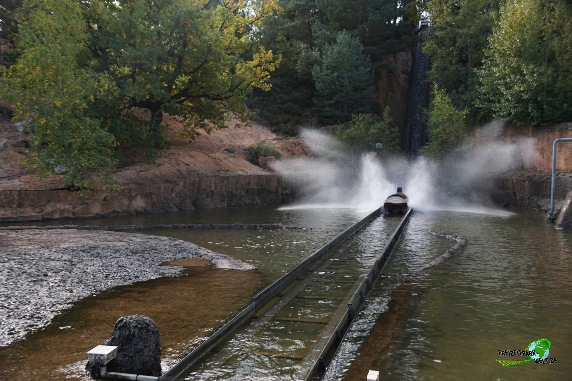 So geht es direkt aus der Station einen natürlich Hang hinauf. Oben angekommen, dreht man in einem tiefen Betonkanal einige Runden auf einem Hochplateau mit zum Teil grandioser Aussicht auf die namensgebende WÜste des Parks. Dann geht es abermals etwas höher und nach einer 180-Grad Schleife erwarte die bis zu 4 Mitfahrer ein richtig tiefer Splash down, der ebenfalls wieder an einem natürlich Hang bzw. eher Klippe gelegen ist. Optisch macht diese Abfahrt richtig was her und auch der Nässegrad ist hier enorm hoch. Cheyenne River ist also nicht für wasserscheue und damit eher eine Attraktion für den Hochsommer. Aber immerhin eine, die schön in Szene gesetzt ist und charmant mit dem Gelände des Parks spielt.
