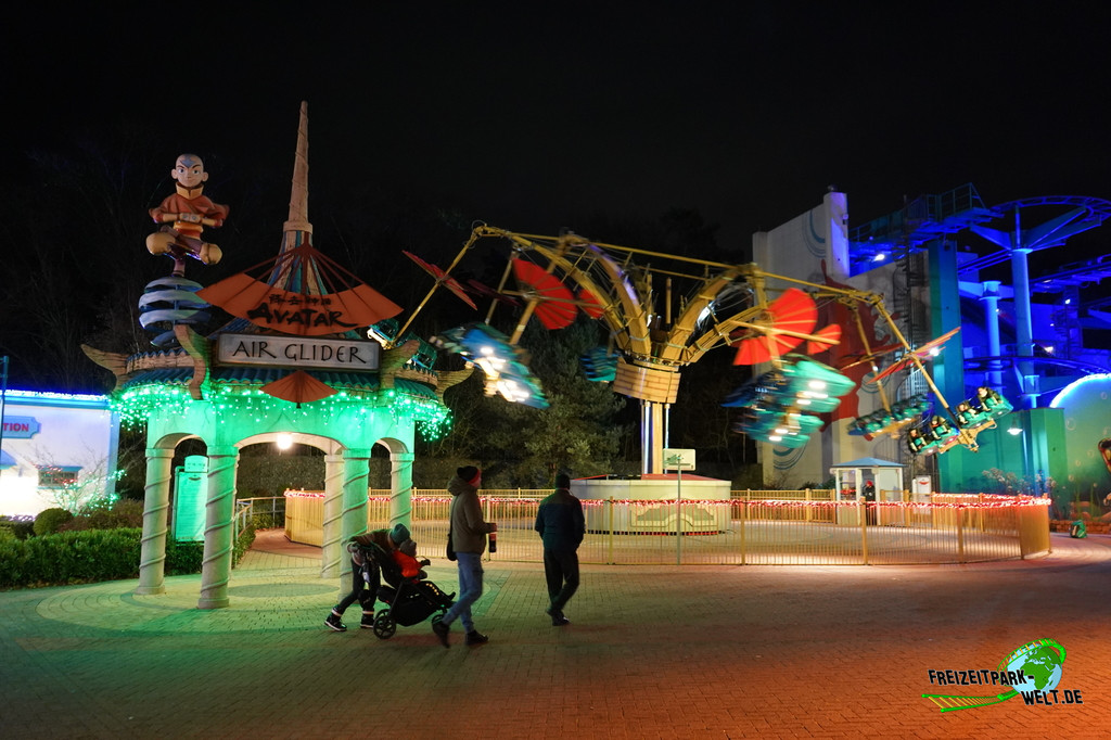 Zwischen der Wilden Maus Ghost Chaser und dem Junior Coaster Mission to Mars wurde im neuen NICKLAND ein sehr seltenes Hochfahrgeschäft gebaut. Genauer genommen ist es die Weltpremiere des Giant Sky Chaser von Zamperla, die hier als Avatar Air Glider seine Runden durch die Bottroper Luft dreht. Wie alle Attraktionen im neuen Kinderland dreht sich auch hier alles um eine Hauptfigur der Cartoon-Reihen im Kindersender NICK. In diesem Fall ist es Avatar, der Herr der Elemente, der sich im Movie Park Germany ganz besonders mit dem Element Luft vertraut macht.