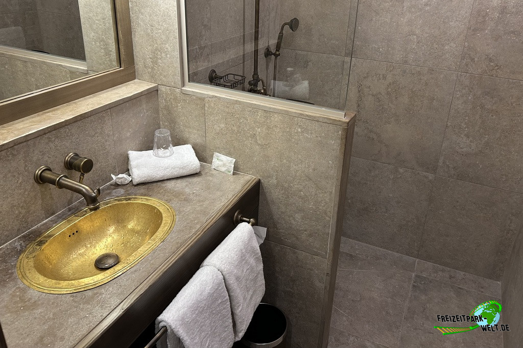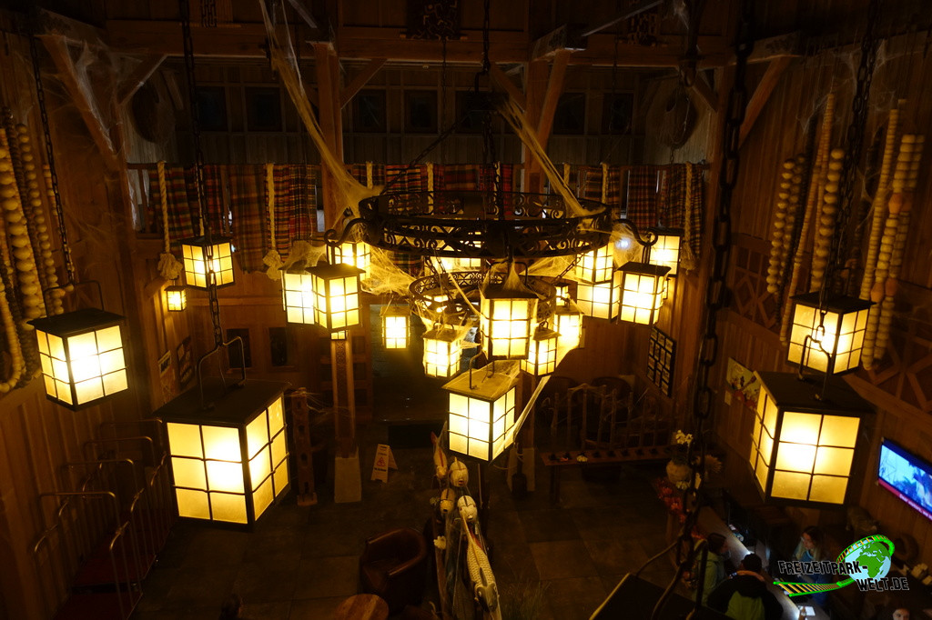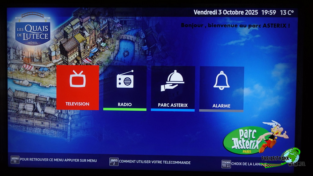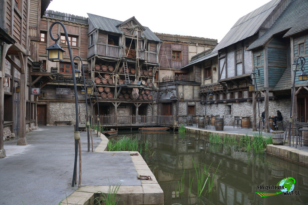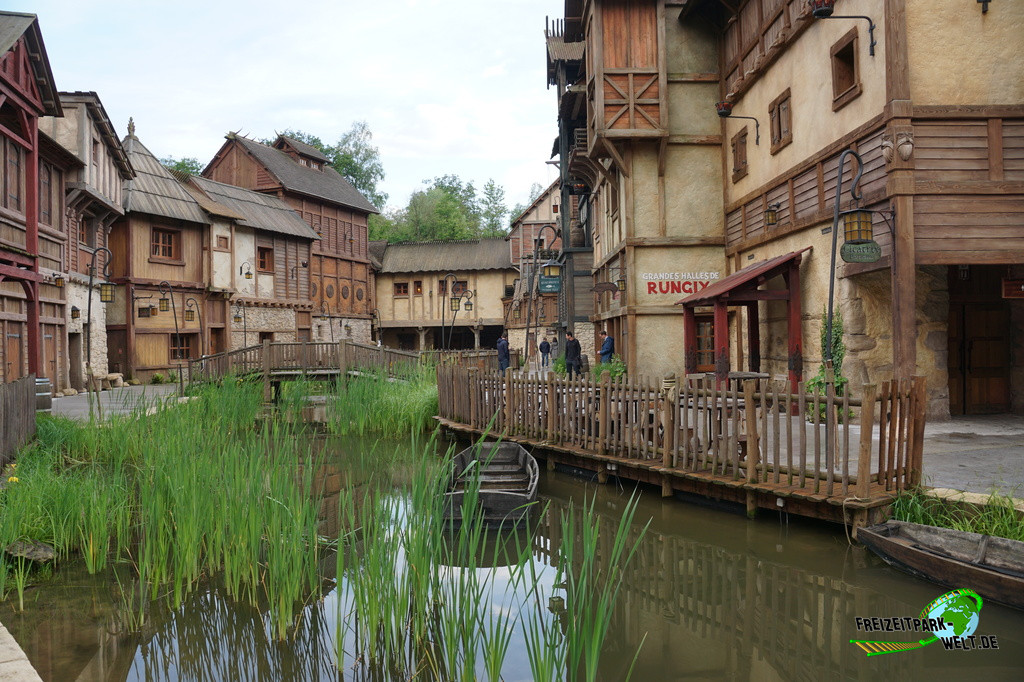 Das 4-Sterne Hotel "Les Quais de Lutèce" wurde 2020 im Parc Astérix eröffnet und ist von der Größe her vergleichbar mit den bereits etwas älteren 3-Sterne Hotels "La Cité Suspendue" und "Les Trois Hiboux" (alle ca. 150 Zimmer). Thematisch geht es hier in das Paris vor 2000 Jahren, wo man die ersten Siedlungen entlang der Seine errichtet hat. Und genau das bildet das Hotel mit dem kleinen Fluß im Inneren und den Häuserzeilen drumherum ab. Von innen ist das wirklich sehr schön anzusehen, zumal es hier auch das ein oder andere Asterix-Detail zu entdecken gibt. Von außen ist hingegen nur der Eingang so wirklich thematisiert, und dieser erinnert noch am ehesten an eine Burg oder ein Stadttor aus dem frühen Paris.