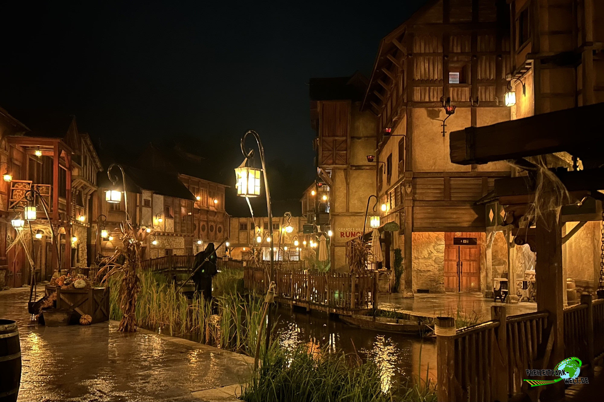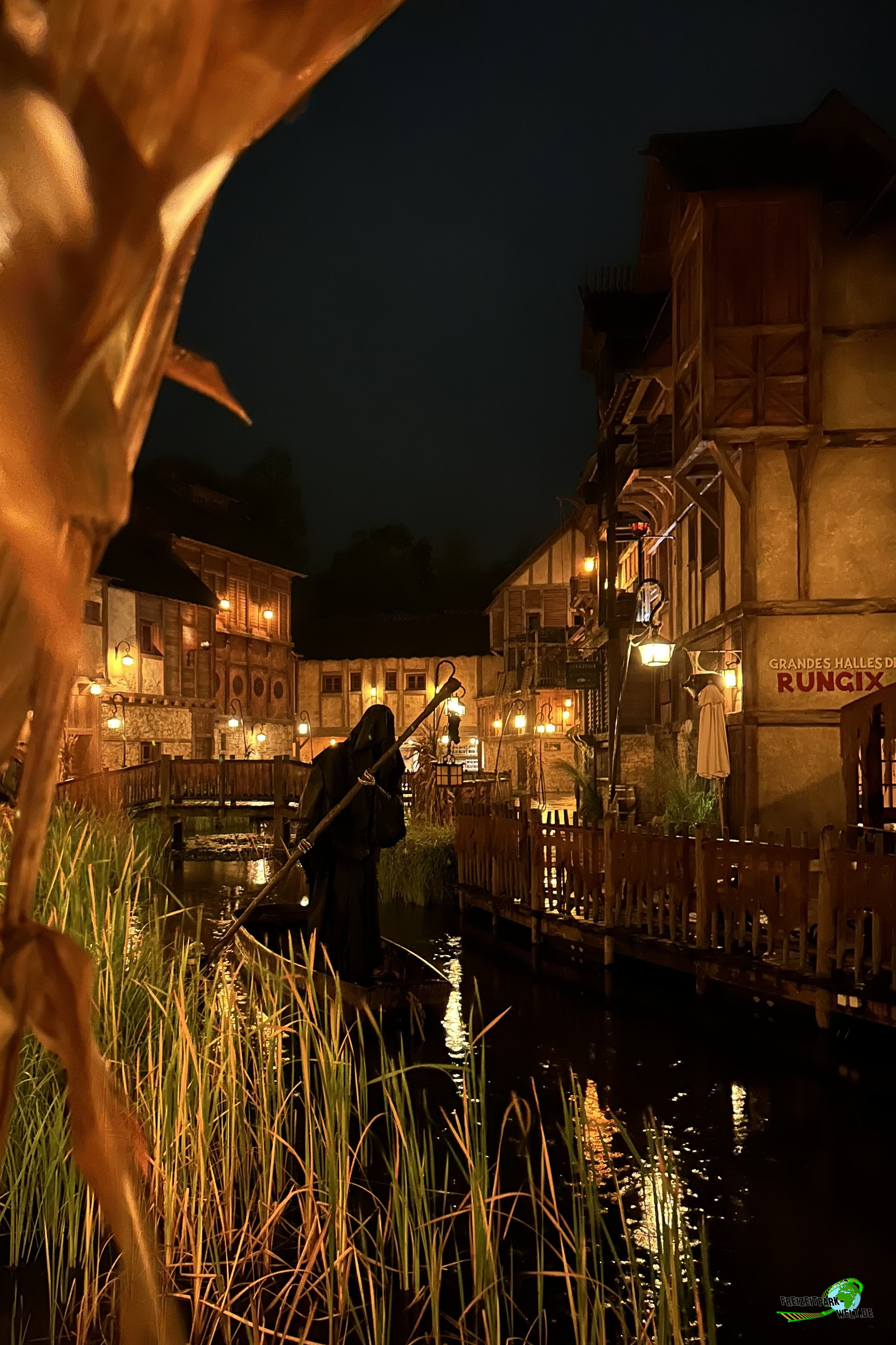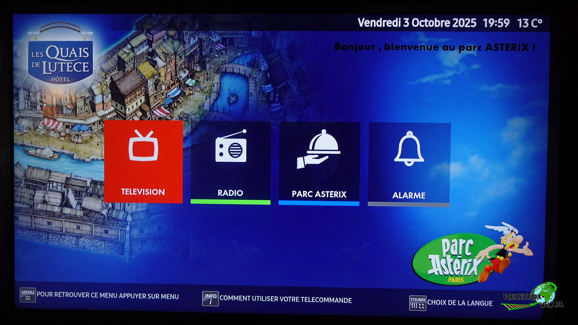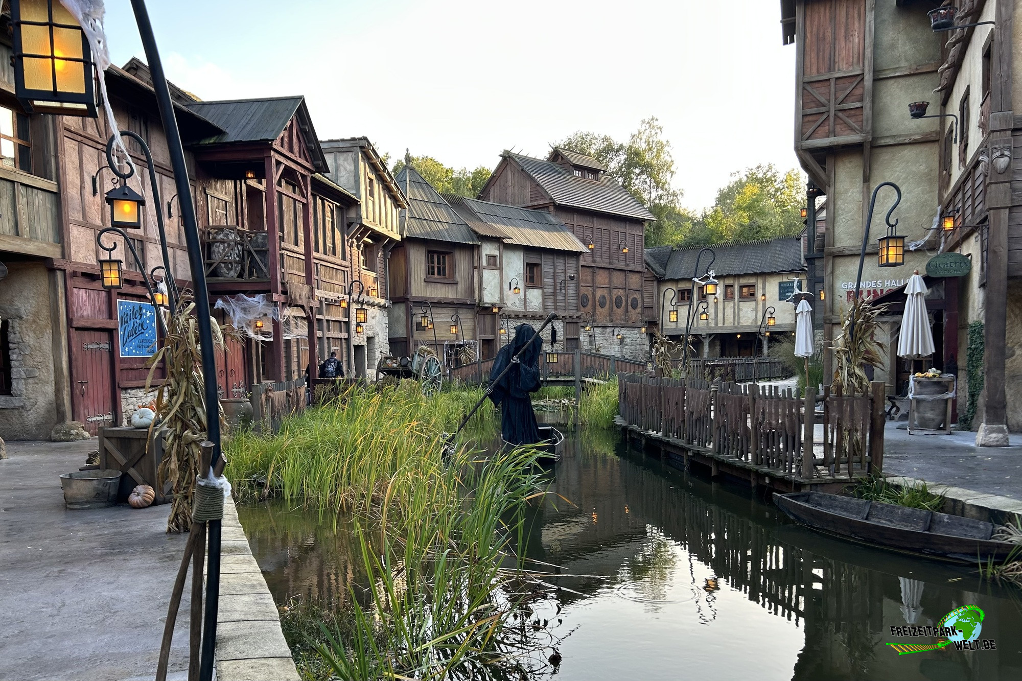Das 4-Sterne Hotel "Les Quais de Lutèce" wurde 2020 im Parc Astérix eröffnet und ist von der Größe her vergleichbar mit den bereits etwas älteren 3-Sterne Hotels "La Cité Suspendue" und "Les Trois Hiboux" (alle ca. 150 Zimmer). Thematisch geht es hier in das Paris vor 2000 Jahren, wo man die ersten Siedlungen entlang der Seine errichtet hat. Und genau das bildet das Hotel mit dem kleinen Fluß im Inneren und den Häuserzeilen drumherum ab. Von innen ist das wirklich sehr schön anzusehen, zumal es hier auch das ein oder andere Asterix-Detail zu entdecken gibt. Von außen ist hingegen nur der Eingang so wirklich thematisiert, und dieser erinnert noch am ehesten an eine Burg oder ein Stadttor aus dem frühen Paris.