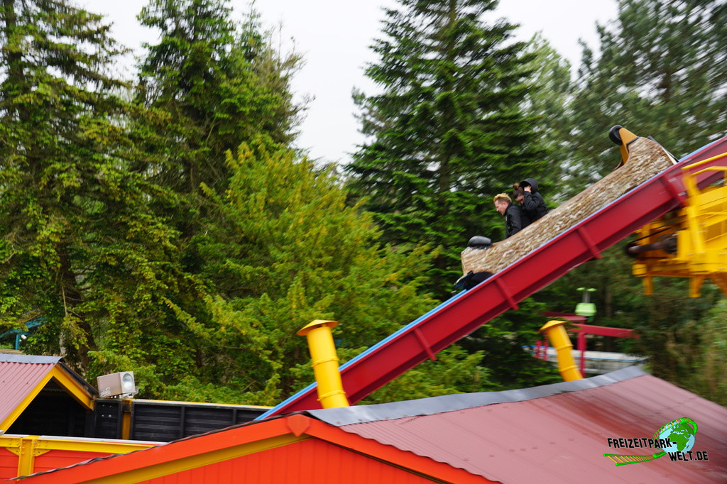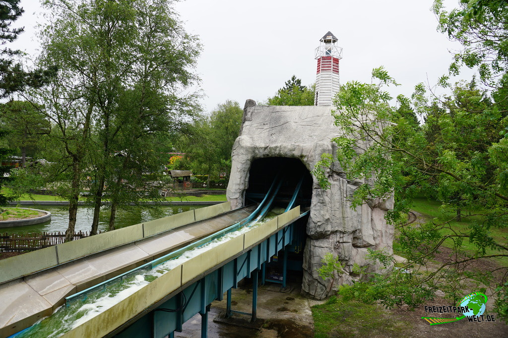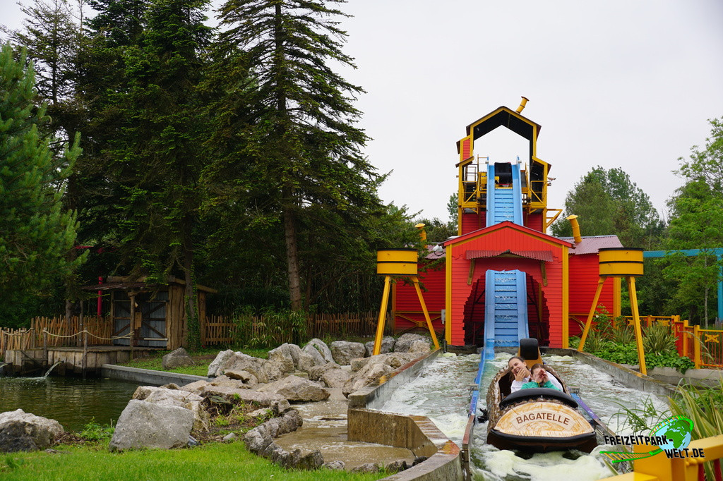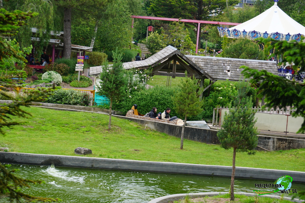 Kurioserweise befinden sich im Parc Bagatelle gleich zwei Log Flumes. Le River Splash im vorderen Bereich des Parks ist aber definitiv besonders, denn es war 1976 die erste Wildwasserbahn des französischen Herstellers Reverchon. Und so hat die Anlage auch ein relativ ungewöhnliches und langey Layout zu bieten und wurde über die Jahre auch thematisch immer wieder ein wenig aufgefrischt.