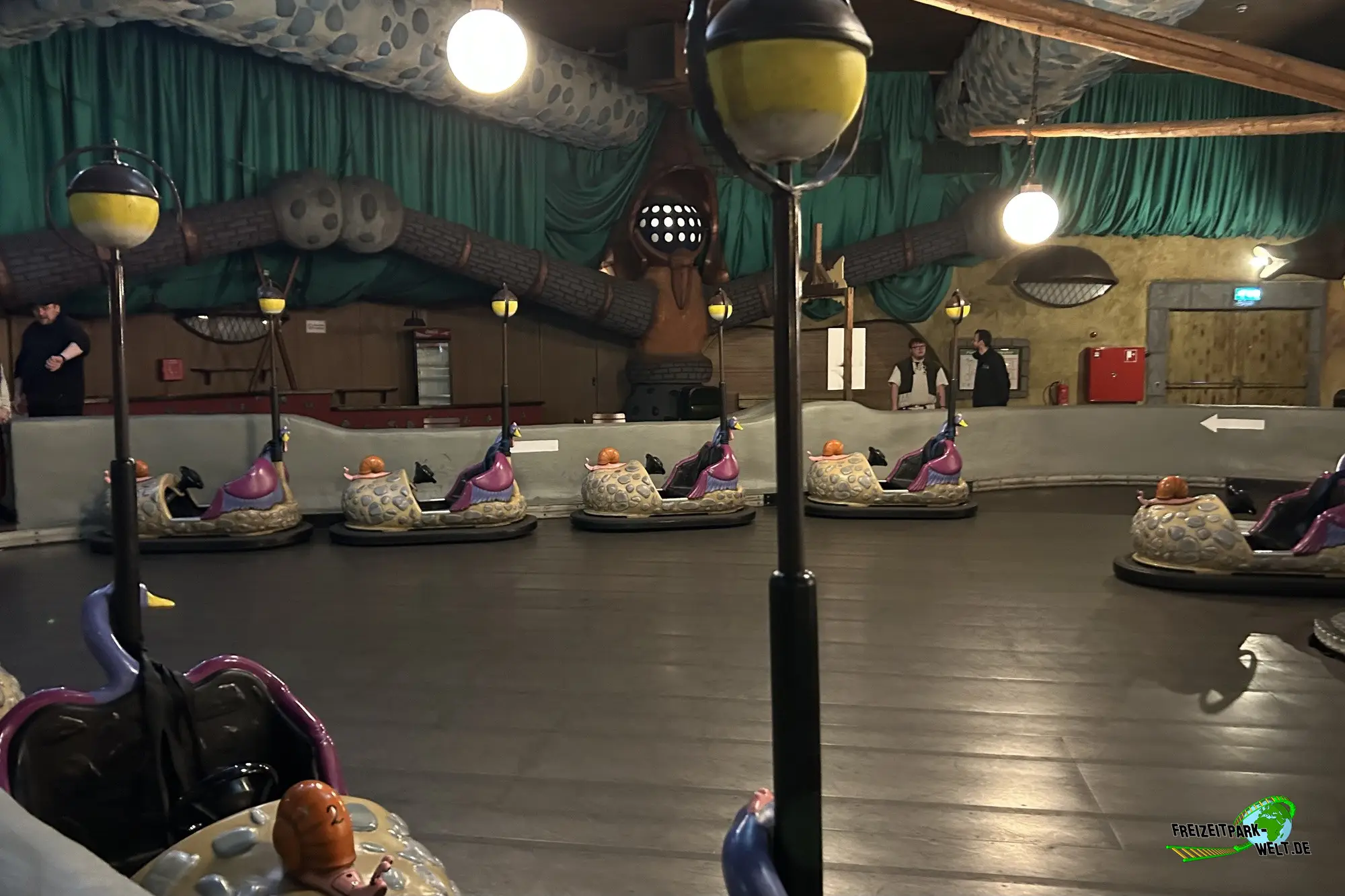 Bei den Bumper Klumpen handelt es sich um einen Autoscooter für die Kleinsten ab 1m Körpergröße (maximal: 1,40m). Ebenso originell wie der Name ist auch das Aussehen der Scooter-Chaisen, denn diese sind auch wirklich wie ein Schuh der Wuzes gestaltet, also eine Art Steinklumpen.