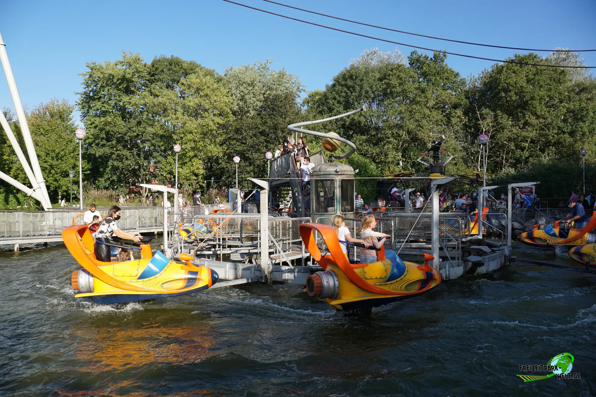 Und dieser Auftritt ist durchaus gelungen. Die kleinen Jetskis bieten Platz für maximal einen Erwachsenen und ein Kind und sind an die Jetskis aus der Serie angelehnt. Auch die Gesamtgestaltung der interaktiven Fahrt kann überzeugen und wurde direkt am See ausgeführt.