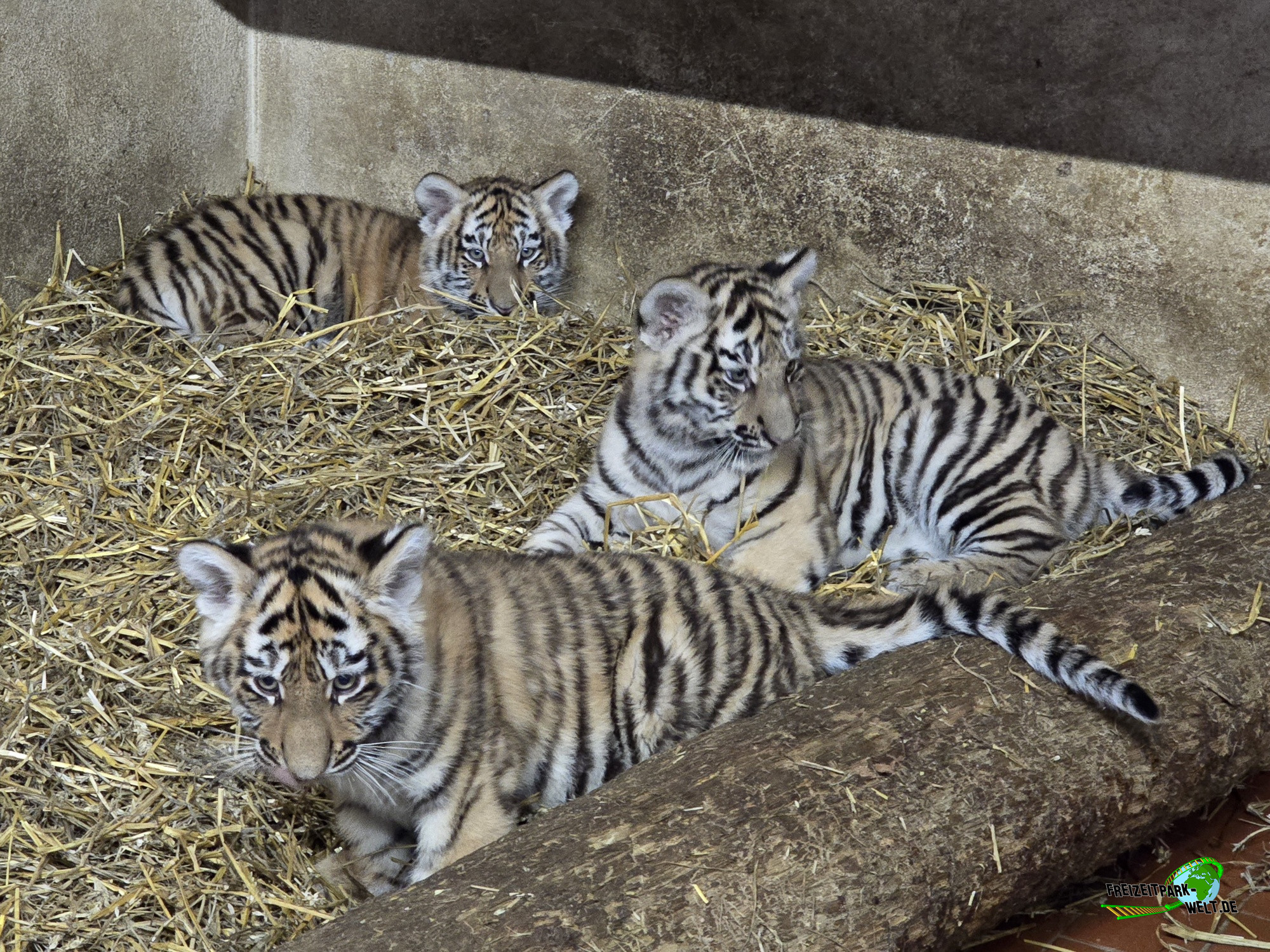 Zurück zum kleinen Nachwuchs im Park, der sorgsam gepflegt wird. Man hat hier ein Händchen für Tiere vor allem für die, die weltweit stark gefährdet sind. Inzwischen sind die Neuankömmlinge untersucht: Es handelt sich um einen Kater und zwei Katzen, die sich allesamt pudelwohl fühlen. Bei den Eltern handelt es sich um die acht Jahre alte Tigerdame Anastasia und den sechs Jahre alten Kater Nanu.