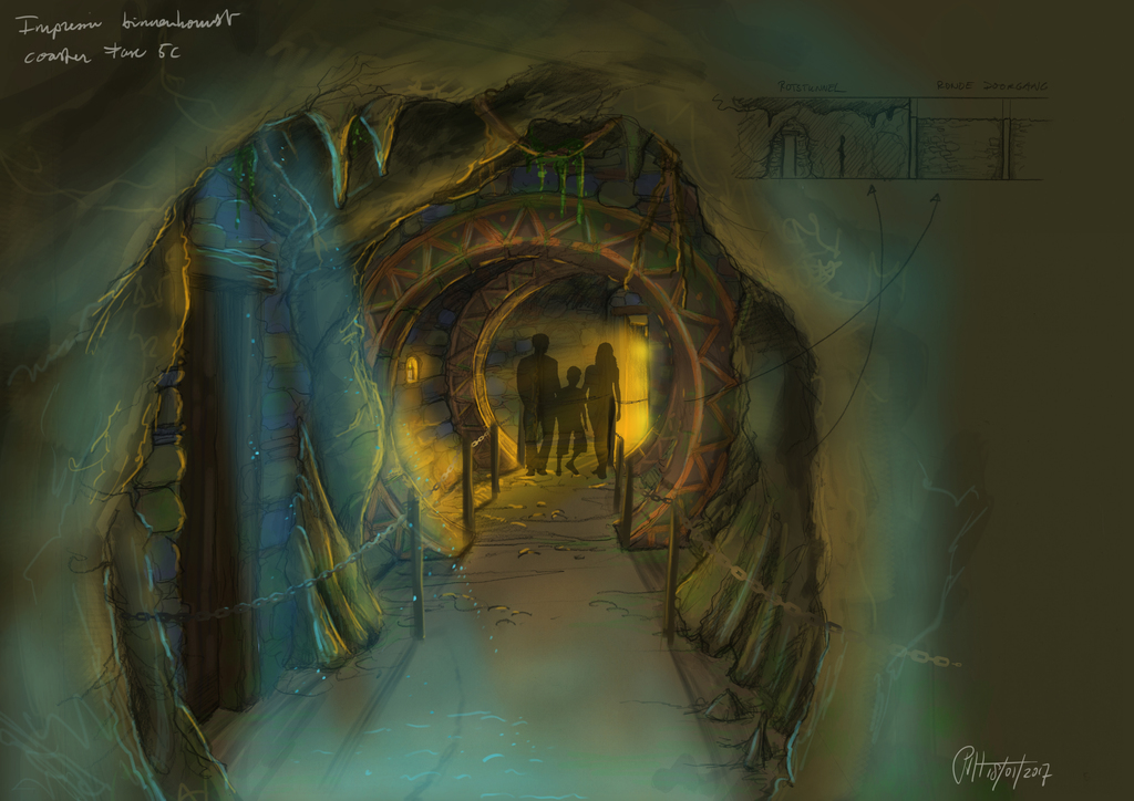 Stationsgebäude und Dark Ride Part von Merlins Quest