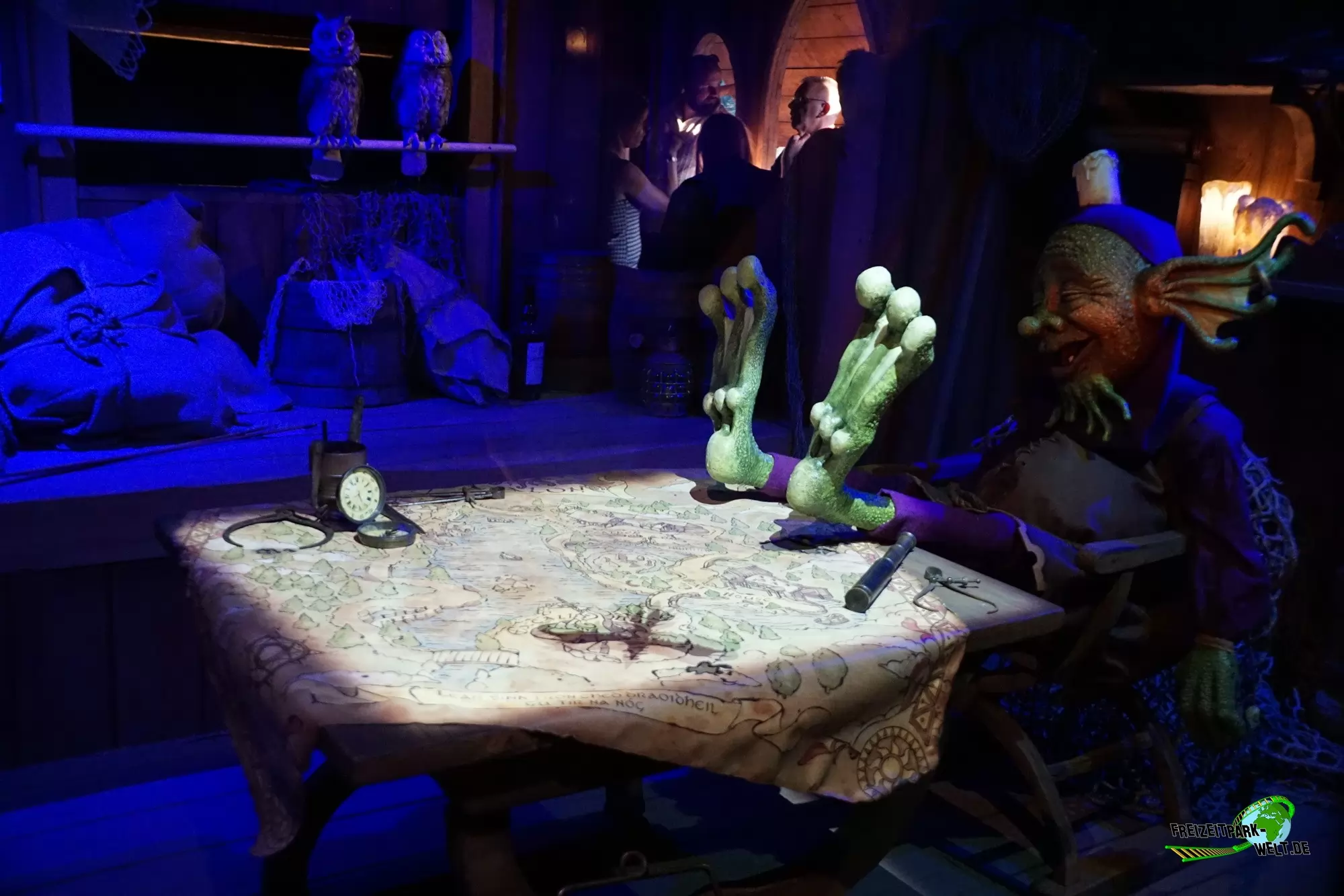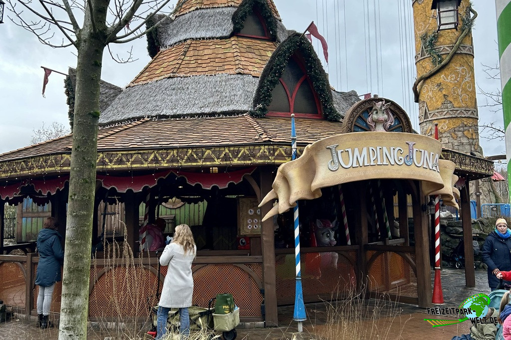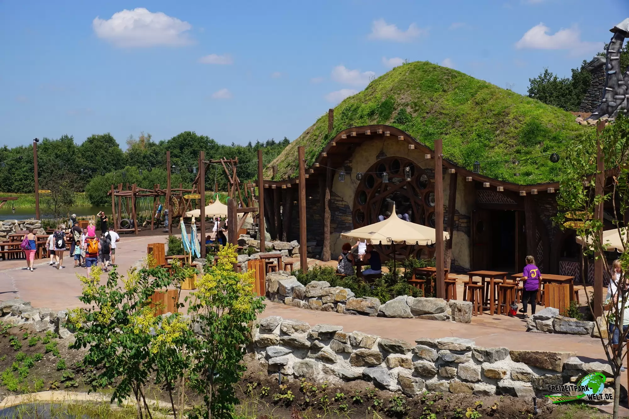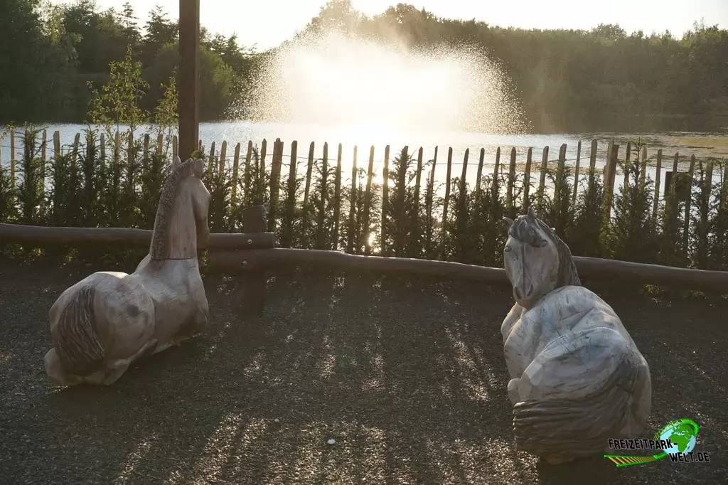 Ganz am Ende des Sees gibt es mit "The Flaming Feather" ein Bedienrestaurant zu entdecken. Die Gestaltung als Pferdestall zieht sich bis zu den Toiletten durch und ist äußerst gelungen. Auch das Innere wartet mit echtem Kamin, einem Sternenhimmel und vielen kleinen Details auf, wobei die keltische Grundthematik auch hier eher rustikal ist. Gleich daneben gibt es für Kinder einen kleinen Spielplatz von merry go round aus Teltow, so dass auch hier nur wenig Langeweile beim Warten auf das Essen aufkommen sollte. Und das Warten hat bei unserem Besuch auch leider etwas zu lang gedauert, wobei sich hier die Prozesse natürlich erst einspielen müssen.