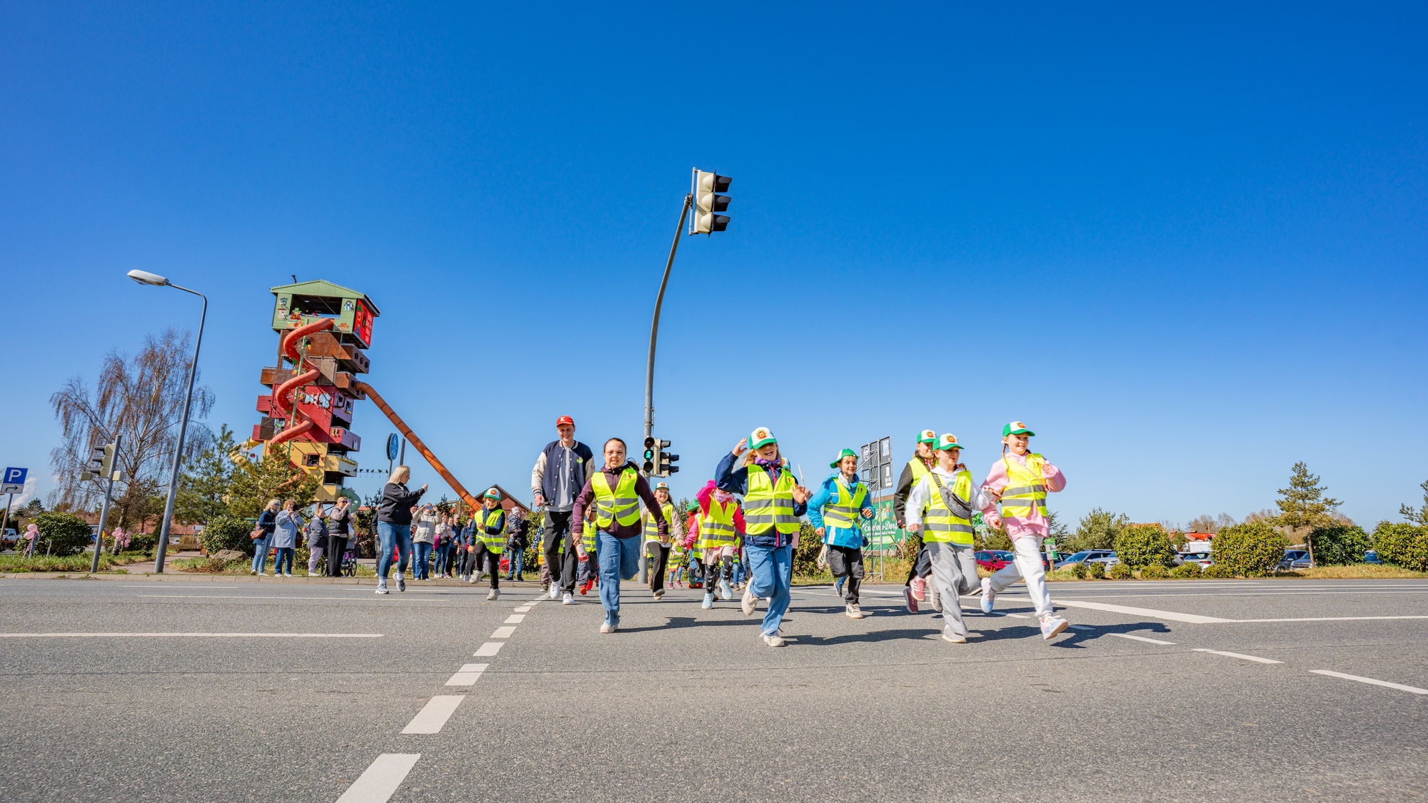Die offizielle Enthüllung haben wir natürlich nicht still und heimlich gemacht. 20 Ampel-Kids aus der Region durften als Erste über die neue „Karlchen-Ampel“ laufen – und hatten dabei mindestens genauso viel Spaß wie wir. Als Dankeschön gab es coole Urkunden, strahlende Gesichter und natürlich „Karlchen Ampel“-Butterkekse.