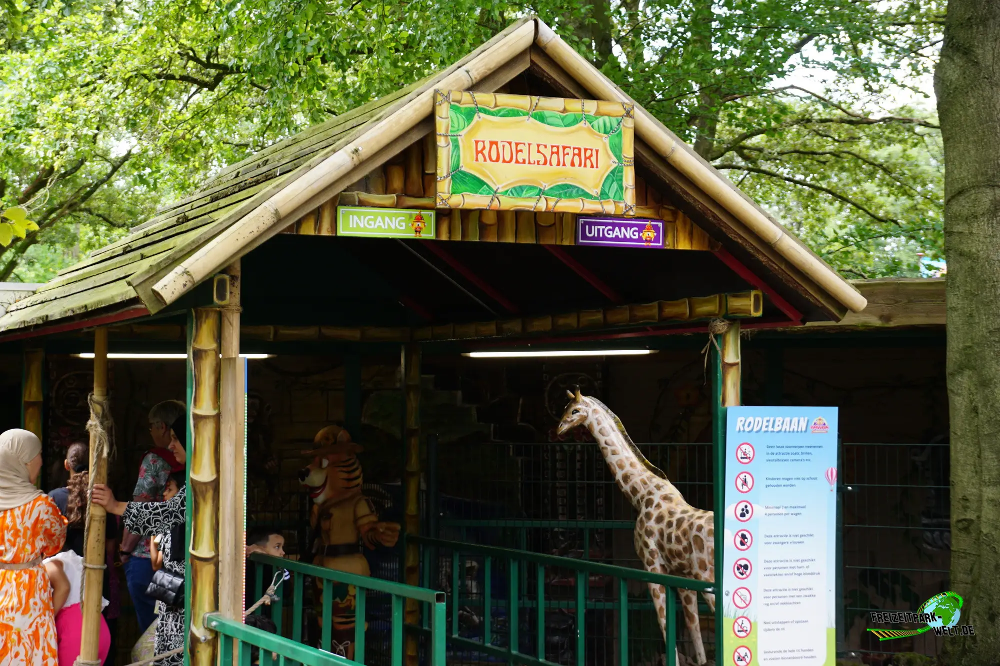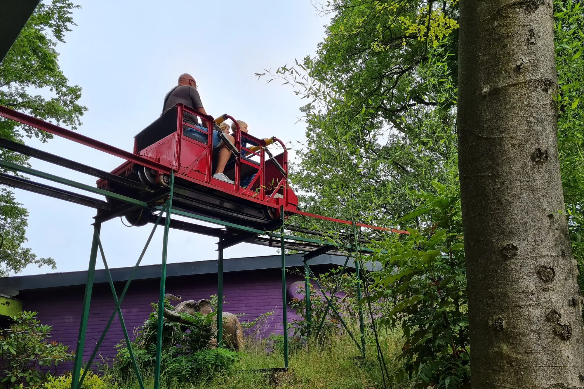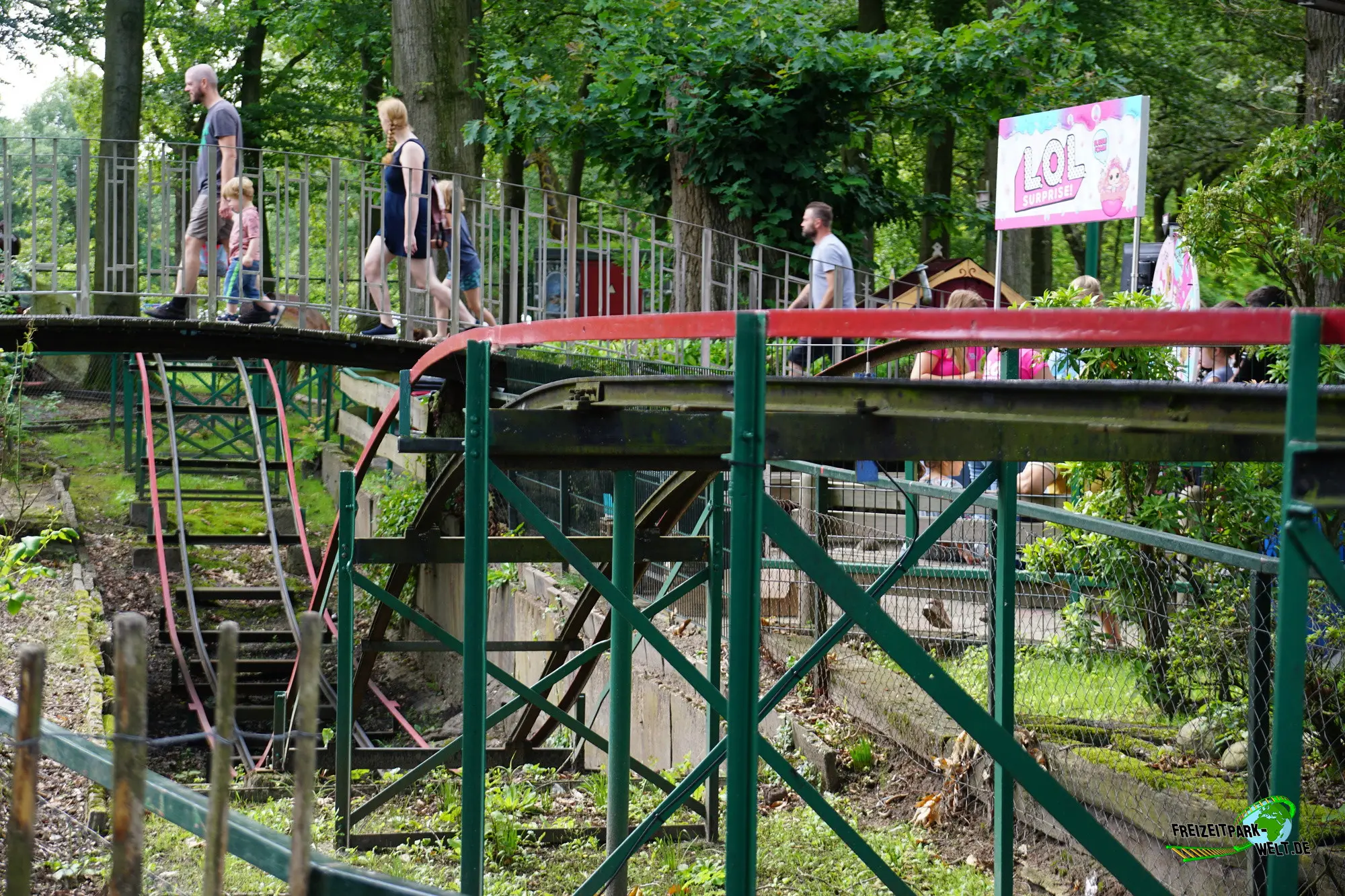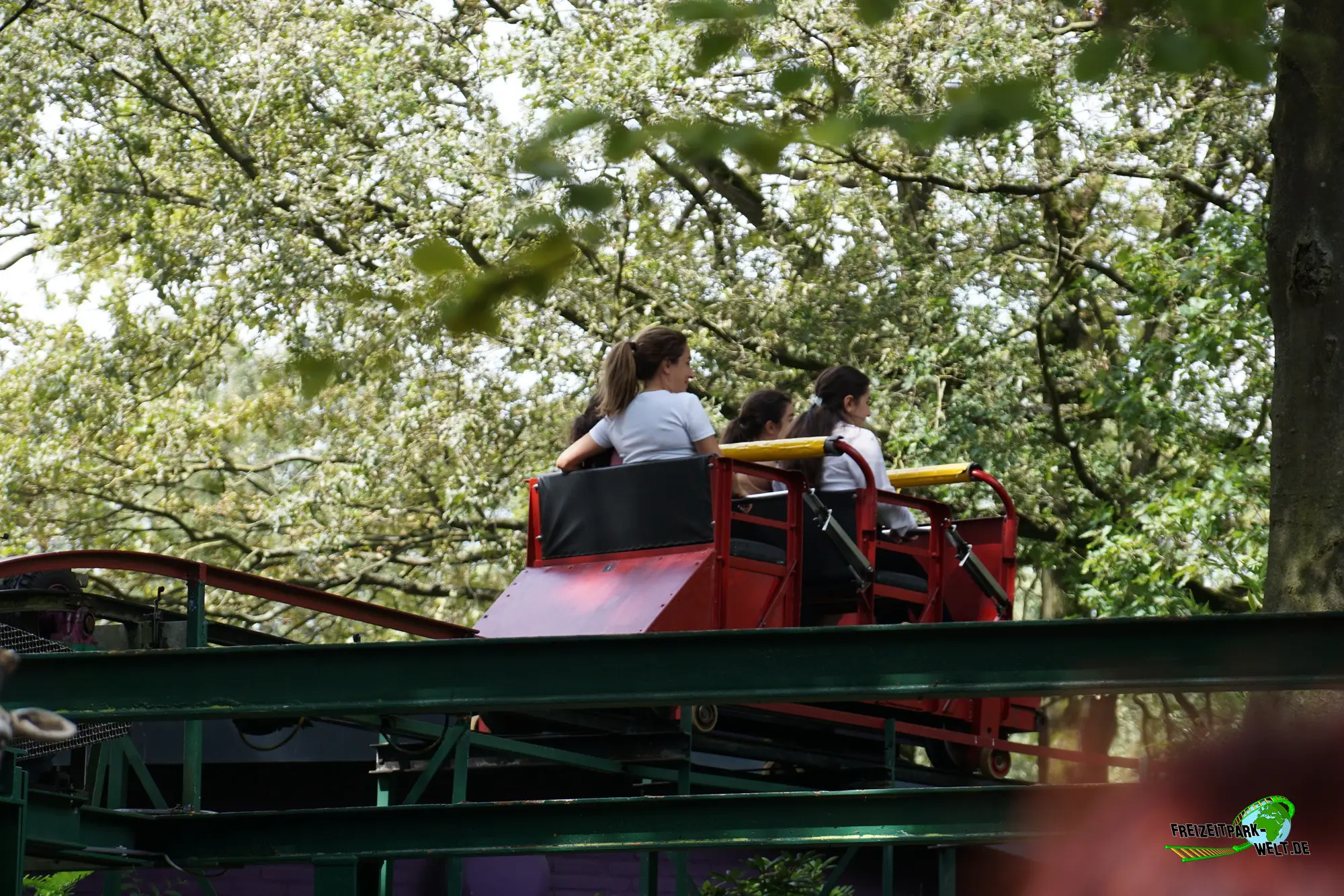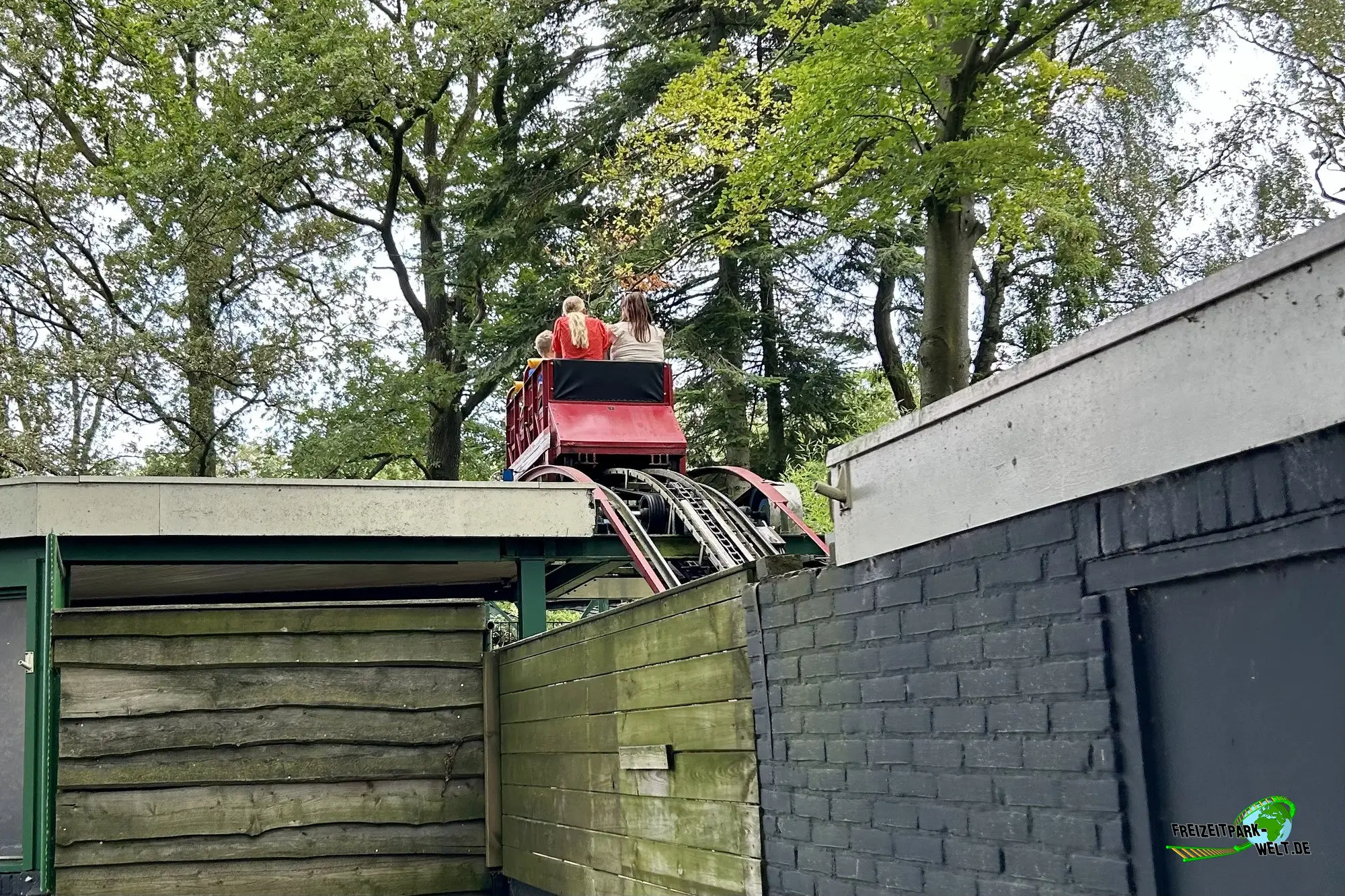 Doch auch die im Jahr 1930 eröffnete Rodelbaan ist ein beeindruckendes Stück Technik und Achterbahngeschichte zugleich. Die Anlage wurde in Eigenregie gebaut und unterschiedet sich deutlich von den heutigen Achterbahnen. Es gibt eine Laufschiene und eine eigene seitlich angebrachte Führungsschiene, die von unten ebenfalls mit Laufrädern befahren bzw. unterfahren wird, damit der Zug nicht nach oben ausbricht. Von Zug zu sprechen ist allerdings auch schon fast zuviel, denn es gibt lediglich einen Wagen, der mit maximal vier Personen besetzt werden kann. Davon fuhr bei unserem Besuch nur ein Wagen, so dass die Wartezeit kapazitätsbedingt eher lang ausfällt.Spaßige Fahrt