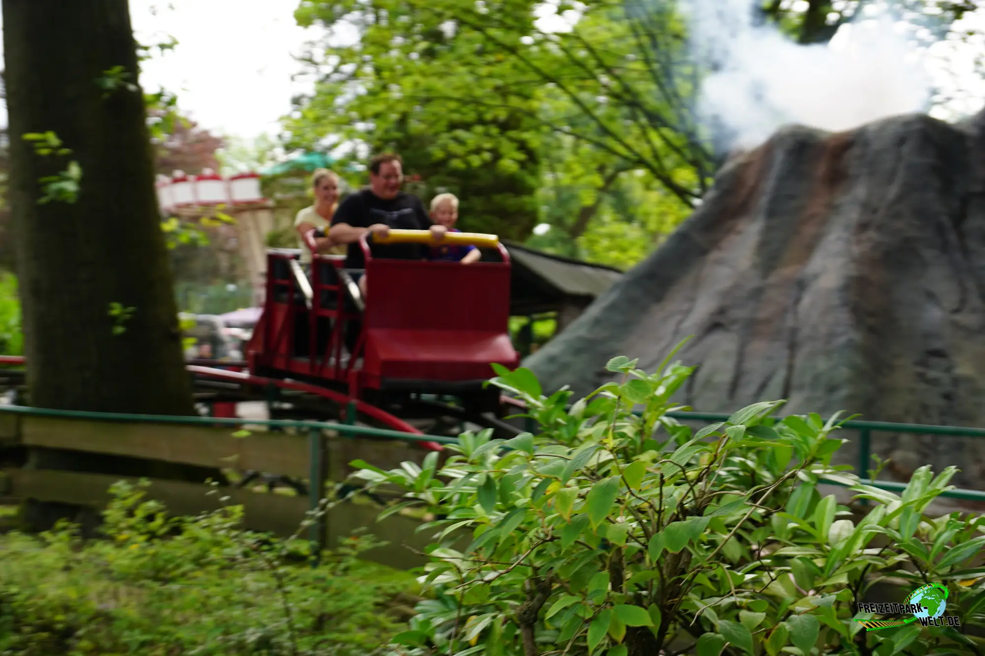 Doch die Fahrt macht das mühelos wett. Ab 100cm Körpergröße kann man hier eine sanfte und faszinierende Fahrt zugleich erleben. Aus der Station geht es nach einer Rechtskurve in den Kettenlift, der den Zug auf eine - aus heutiger Sicht - winzige Starthöhe von 4m bringt. Nach einer weiteren Rechtskurve gelangt man auf die Rückseite des Autoscooters vorbei am See und nimmt mit dem First Drop zum ersten Mal richtig Fahrt auf. Am Ende der langen Geraden geht es wieder aufwärts und - ihr dürft mal raten - wiederumg rechts entlang. Wieder ohne Banking und alles sehr bodennah. Vorbei am Venture River unterquert man mit einem weiteren Drop eine Fußgängerbrücke und kommt hinter der Oldtimerfahrt wieder raus. Nach einer weiteren Rechtskurve geht es zurück zur Station.