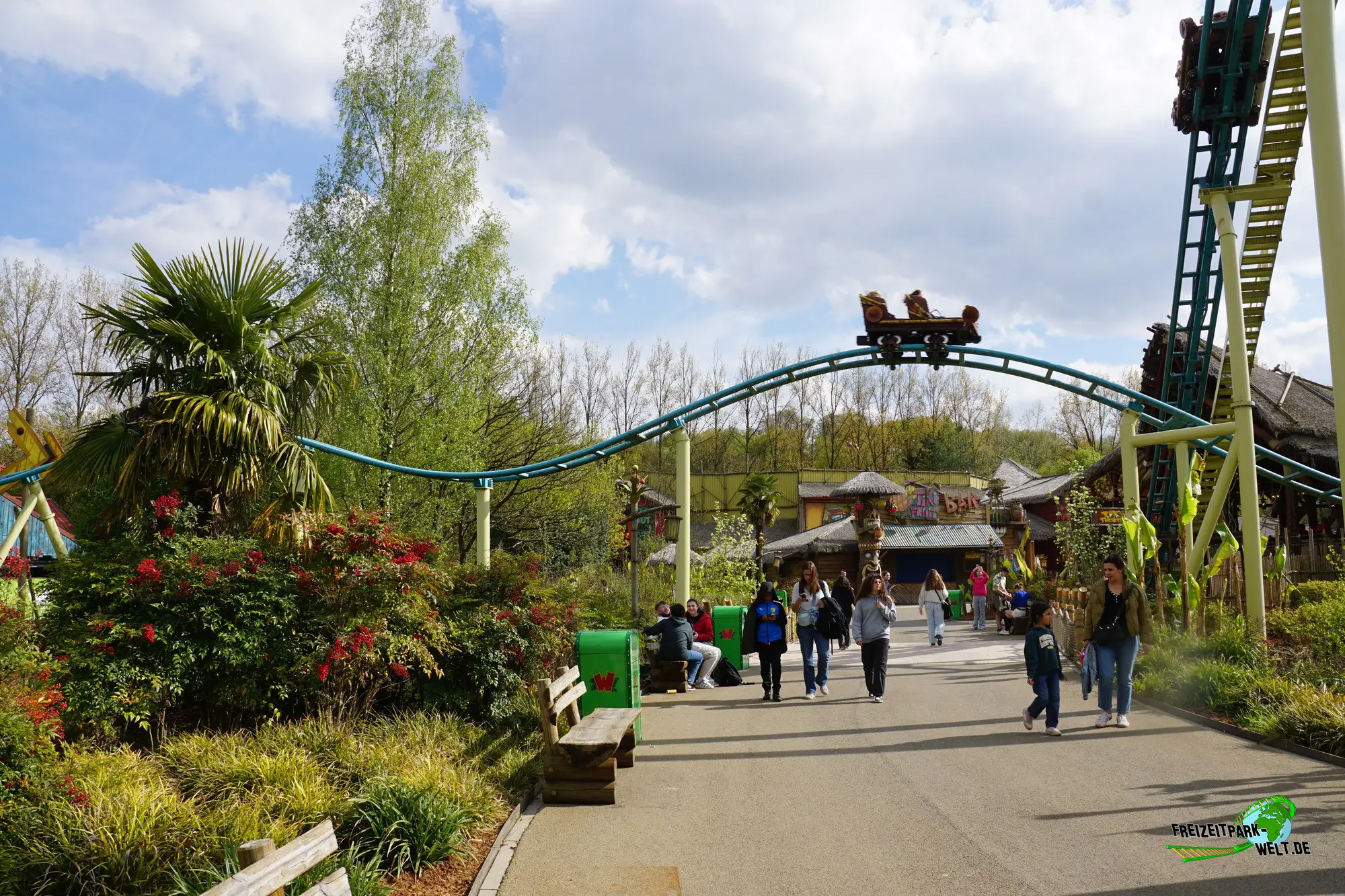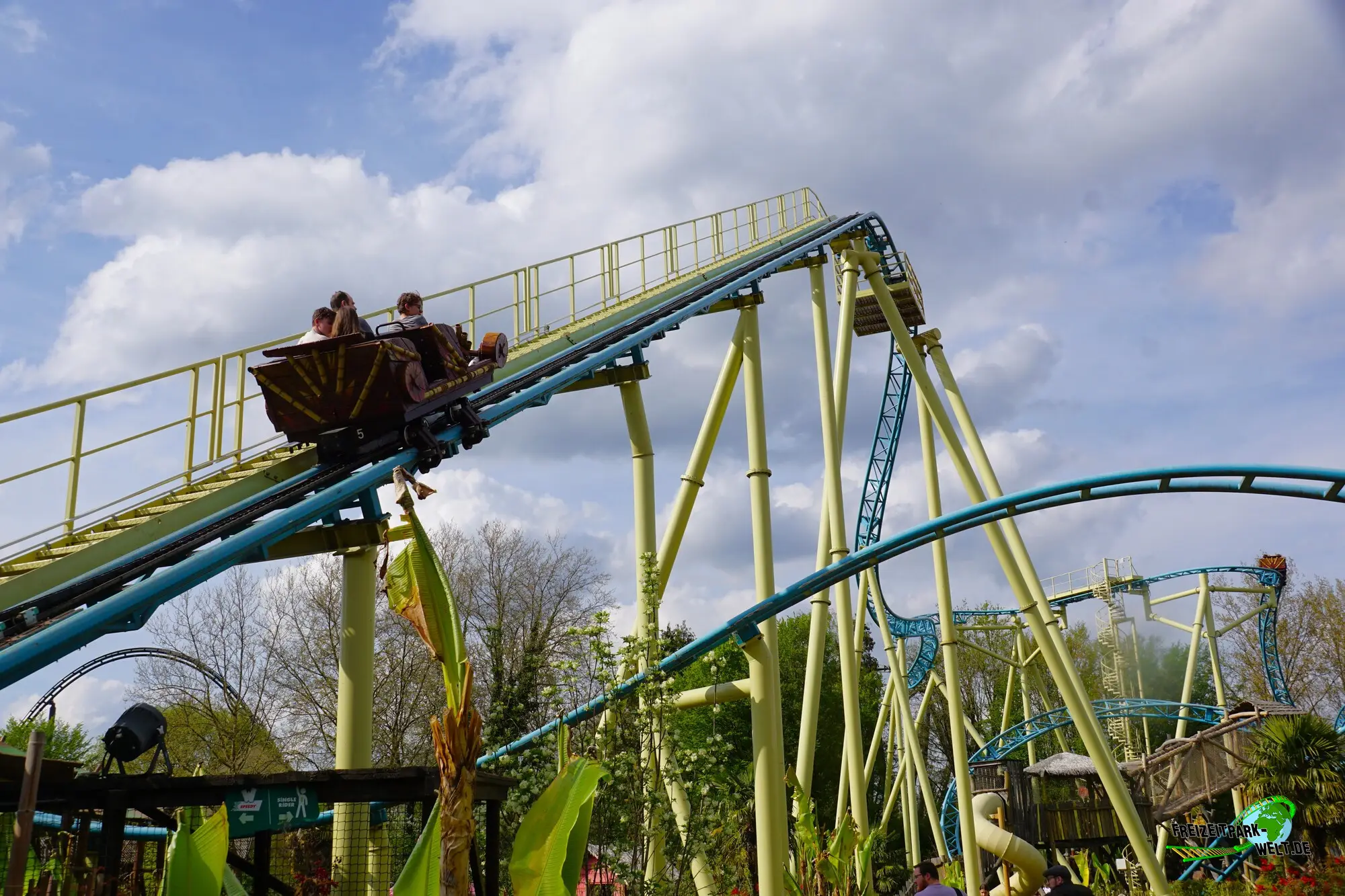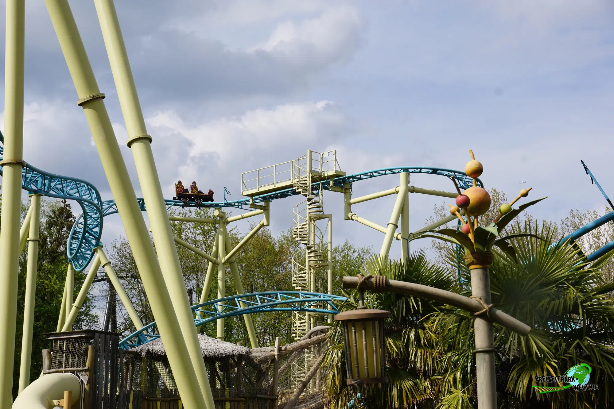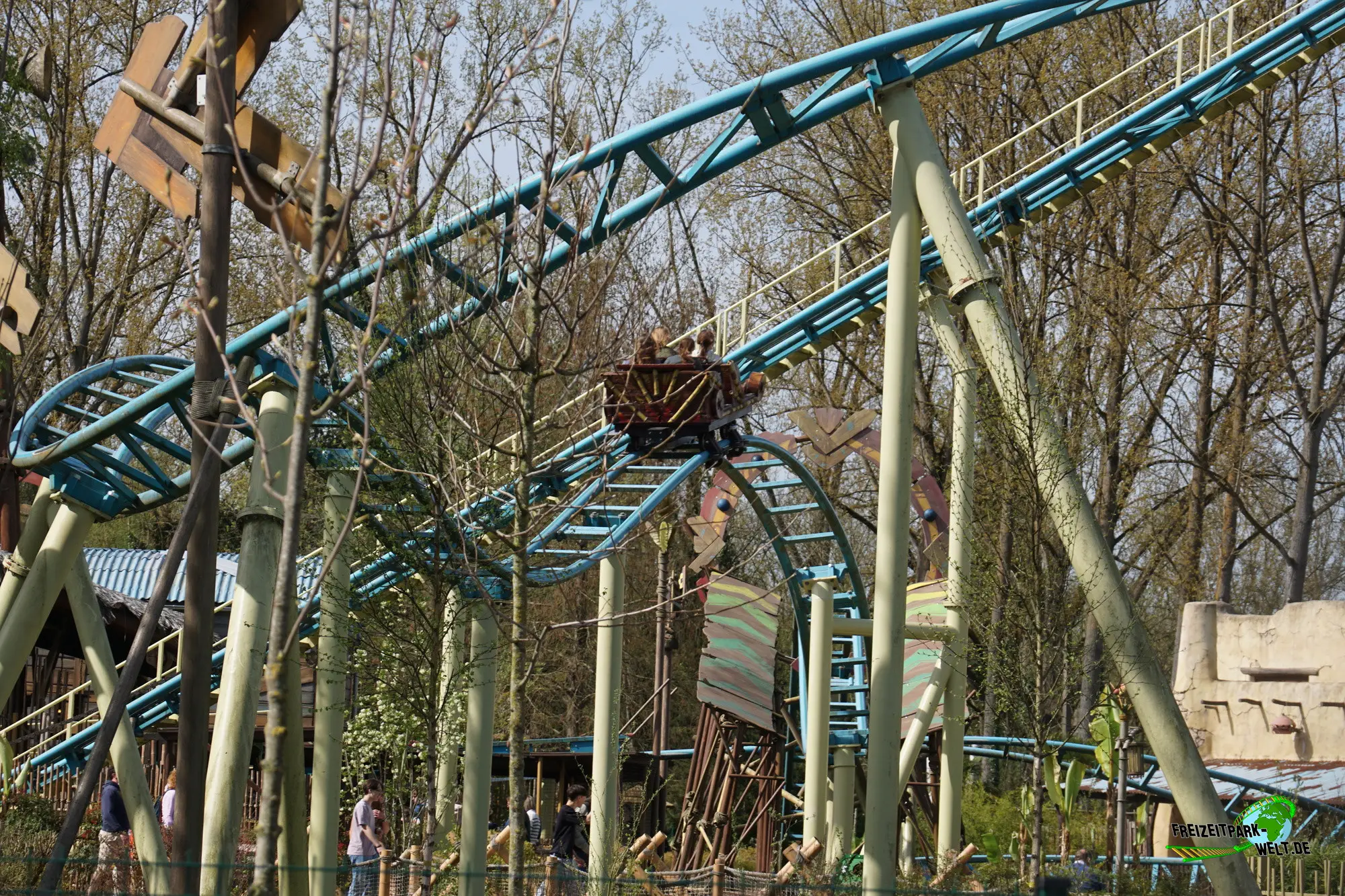 Aus der Station heraus geht es in eine 90°-Linkskurve, die die kleinen 4-Sitzer Bobsleds direkt in den Kettenlift schickt. Aus einer Höhe von 21m geht es dann in das ungewöhnliche, weil erstmals hier realisierte, Layout. Man startet in einen Pre-Drop, dem eine S-Kurve folgt. Dann geht es schon wieder hoch mit einer 90-Grad-Kurve in die Blockbremse und aus ihr raus. Der nachfolgende Drop ist eigentlich der richtige First Drop, denn den ersten konnte man kaum als Drop bezeichnen. Ab hier wird die Fahrt aber dynamischer und führt über viele langgezogene Kurve mit S-Turns schließlich wieder in Richtung Station. Es folgt ein weiterer Block, bevor wir nochmal fast bis in Bodennähe unter dem Trail hindurch kommen. Parallel zum Lift folgt dann der letzte Block, bevor eine typische Camelback-Sequenz senkrecht zum Lift abgespult wird. Schließlich folgt eine Helix hinauf in Richtung Abschlussbremse.Sowohl Theming als auch das Layout machen Tiki-Waka sehr speziell. Der erste Part ist vielleicht etwas lahm und auch die Wilde Maus-Kurven sind nur angedeutet. Danach wird die Fahrt jedoch deutlich dynamischer und macht Spaß.