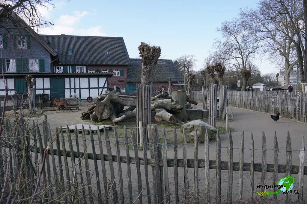Der Clemenshof ist ein kleiner, bäuerlicher Bereich ganz am Anfang des Zoos, der sich mit der typisch deutschen Tierhaltung auf einem Bauernhof befasst. Neben kleinen Haustieren, gibt es hier also auch Kühe, Esel, Hühner und eine ganz besondere Ziege.